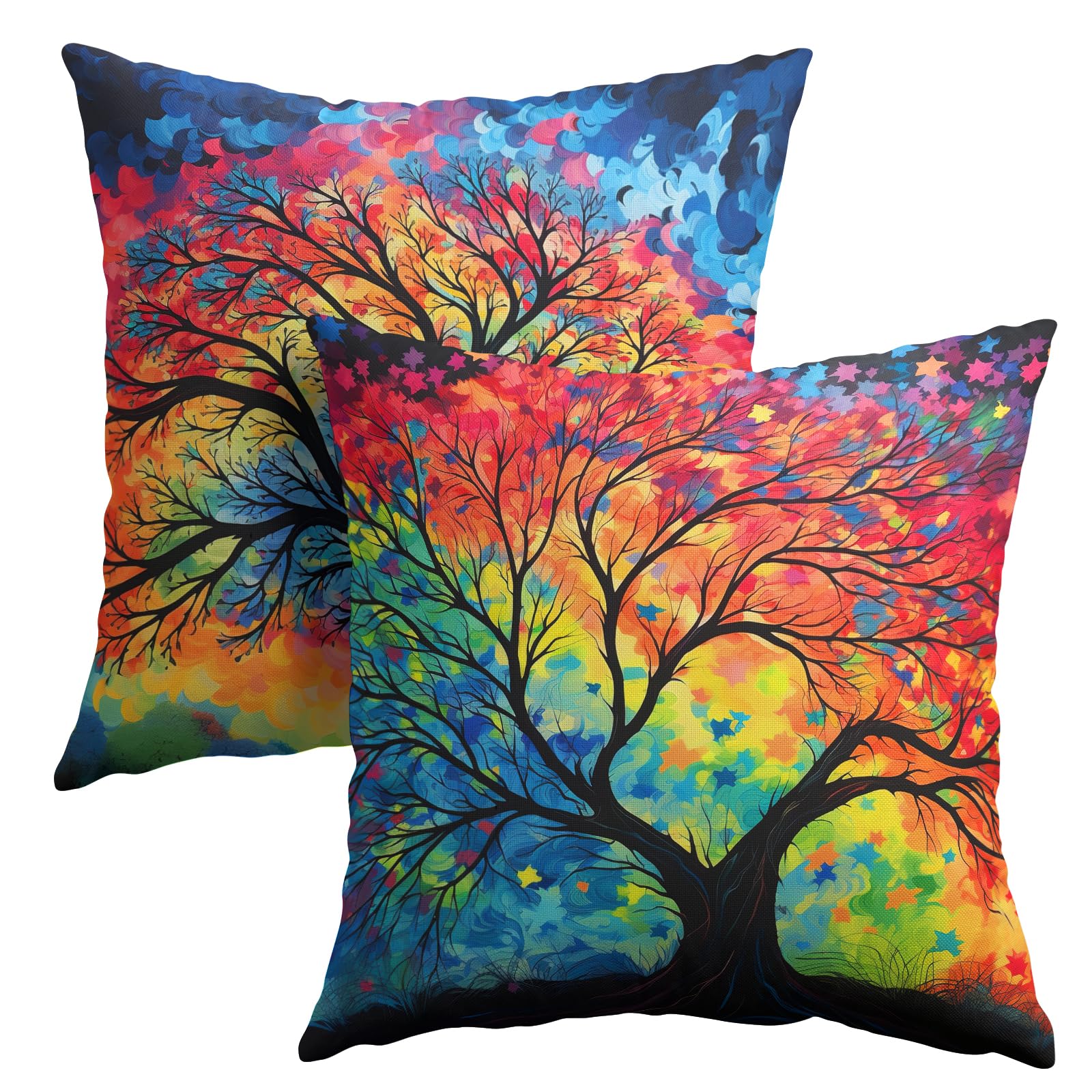 Granbey Watercolor Tree Throw Pillow Cover - Colorful Tree Pillow Covers 16x16 Set of 2 Nature Forest Pillowcase Decor for Indoor Outdoor Home Sofa
