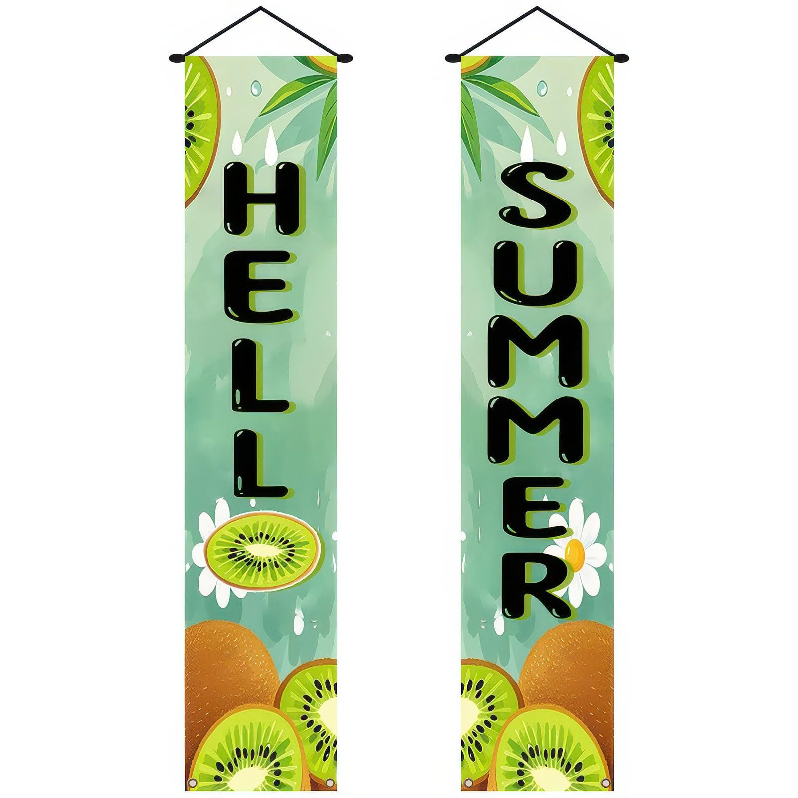 BlissYard 2pcs Hello Summer Door Banner Kiwi Porch Banner Sign Sweet Green Summer Sunshine Front Door Hanging Decor Banners for Seasonal Home Hawaii