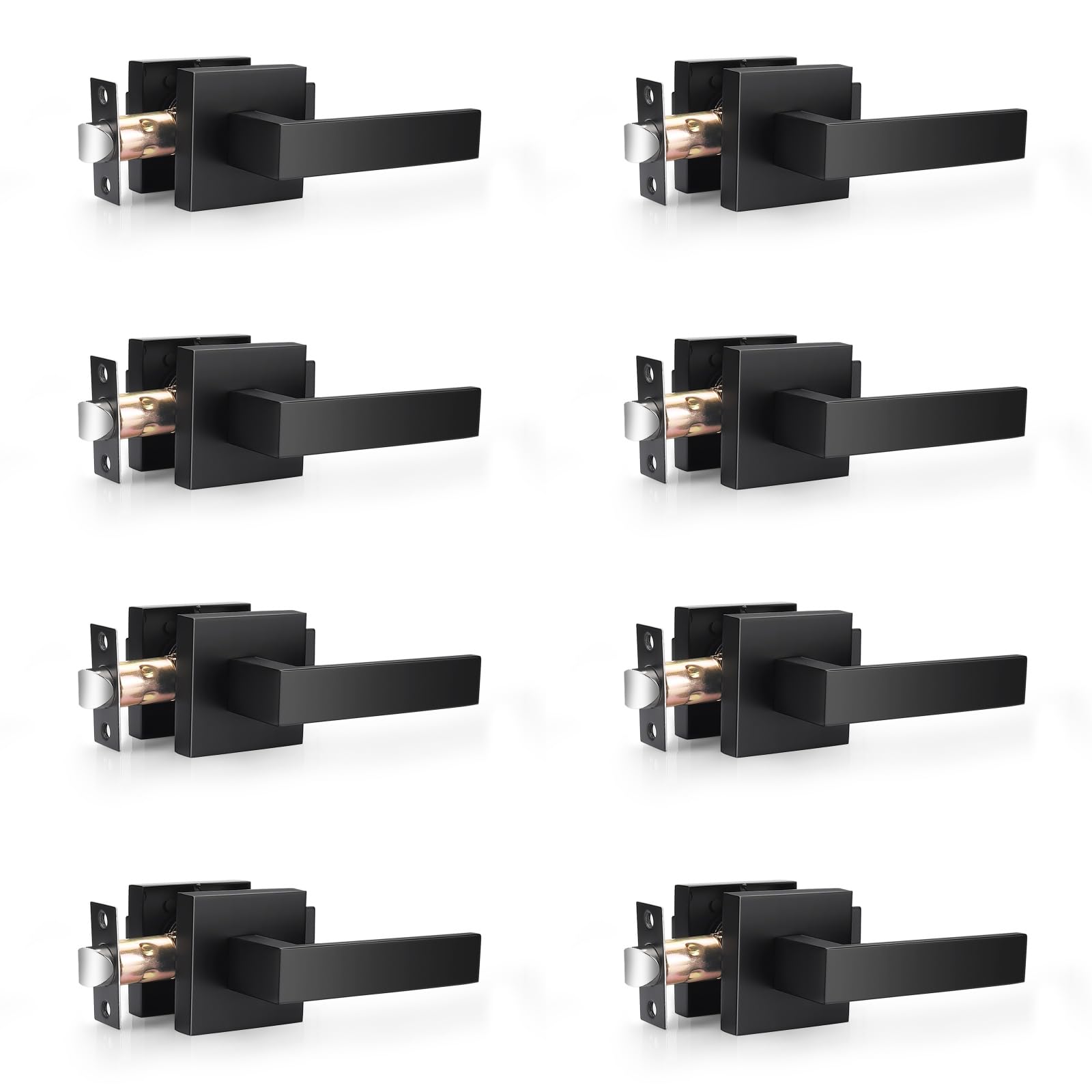 Probrico Matte Black Passage Door Levers Square Hall Closet Handles, Heavy Duty Interior Non-Locking Lever Sets, Reversible for Right & Left Side, 8