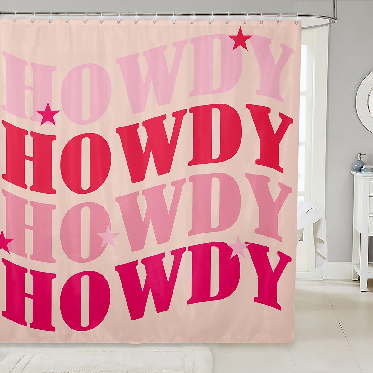 Erosebridal Howdy Printed Pink Shower Curtain Western Fabric Shower Curtain,Pink Wild West Style Bathroom Shower Curtain Sets for Kids Girls Modern