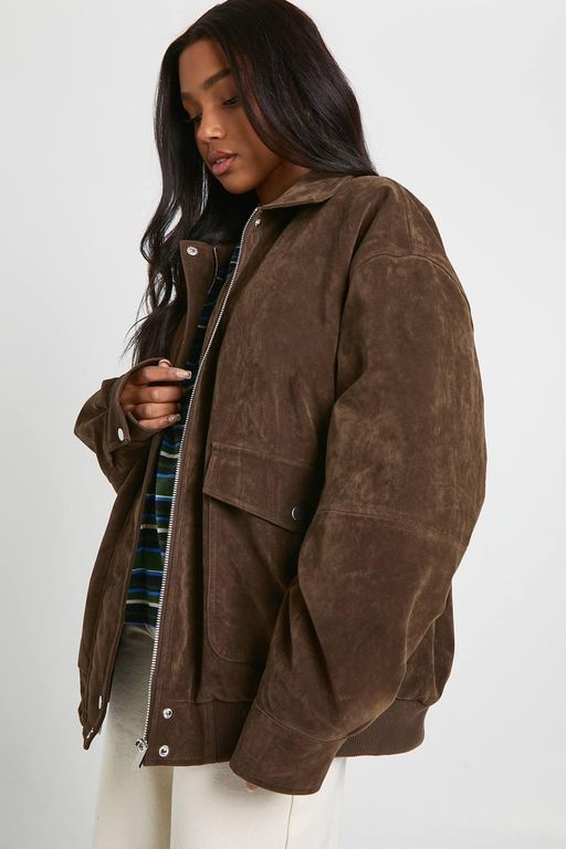 Women's Boohoo Oversized Faux Suede Bomber Jacket - Brown - Casual jackets Womens Oversized Faux Suede Bomber Jacket - Brown - 4 - Wrap up in the latest coats and jackets and get out-there with your outerwearBreathe life into your new season...