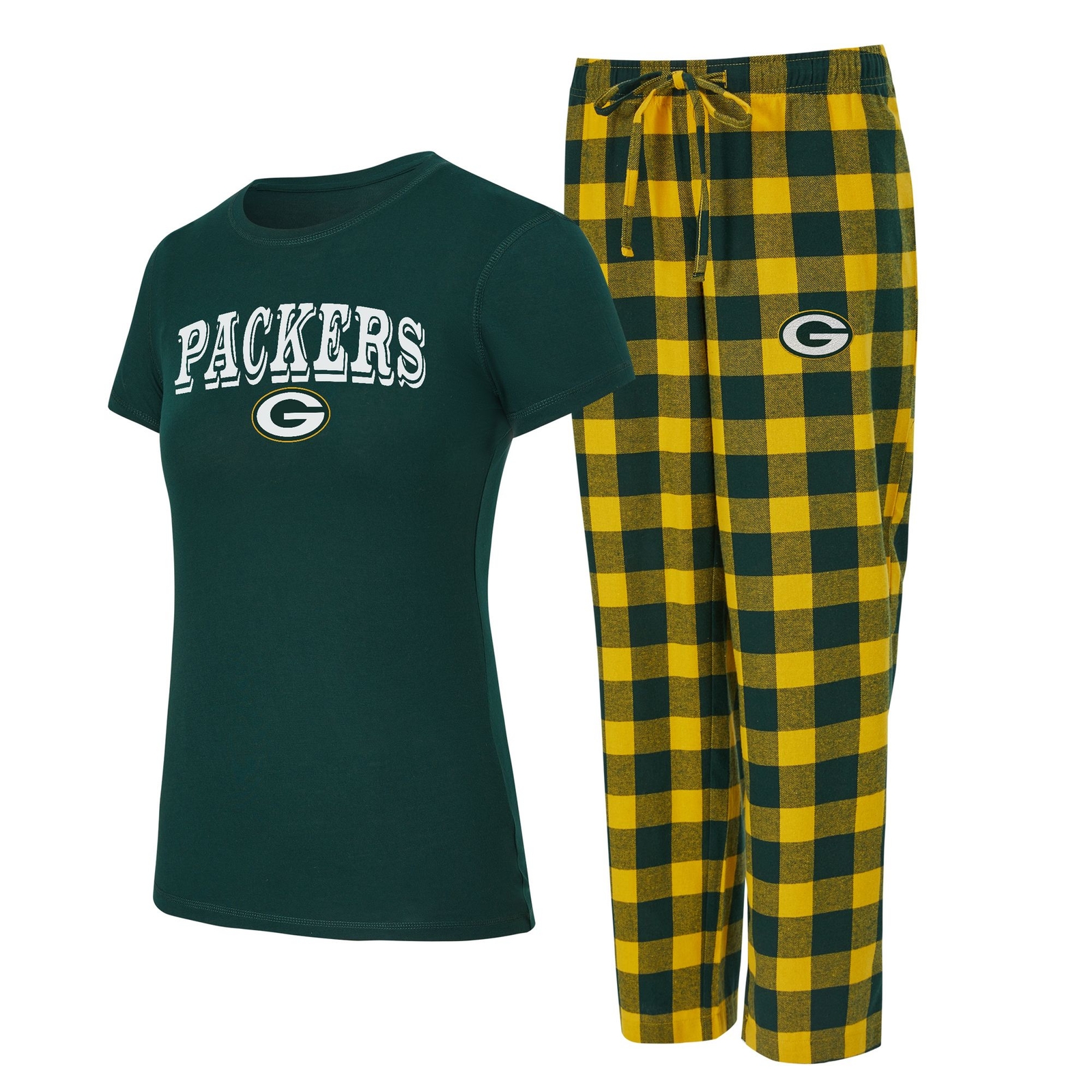 NFL Women's Avondale Short Sleeve Top and Pant Set (Size XXXL) Green Bay Packers/Hunter Green/Gold, Cotton,Polyester,Rayon