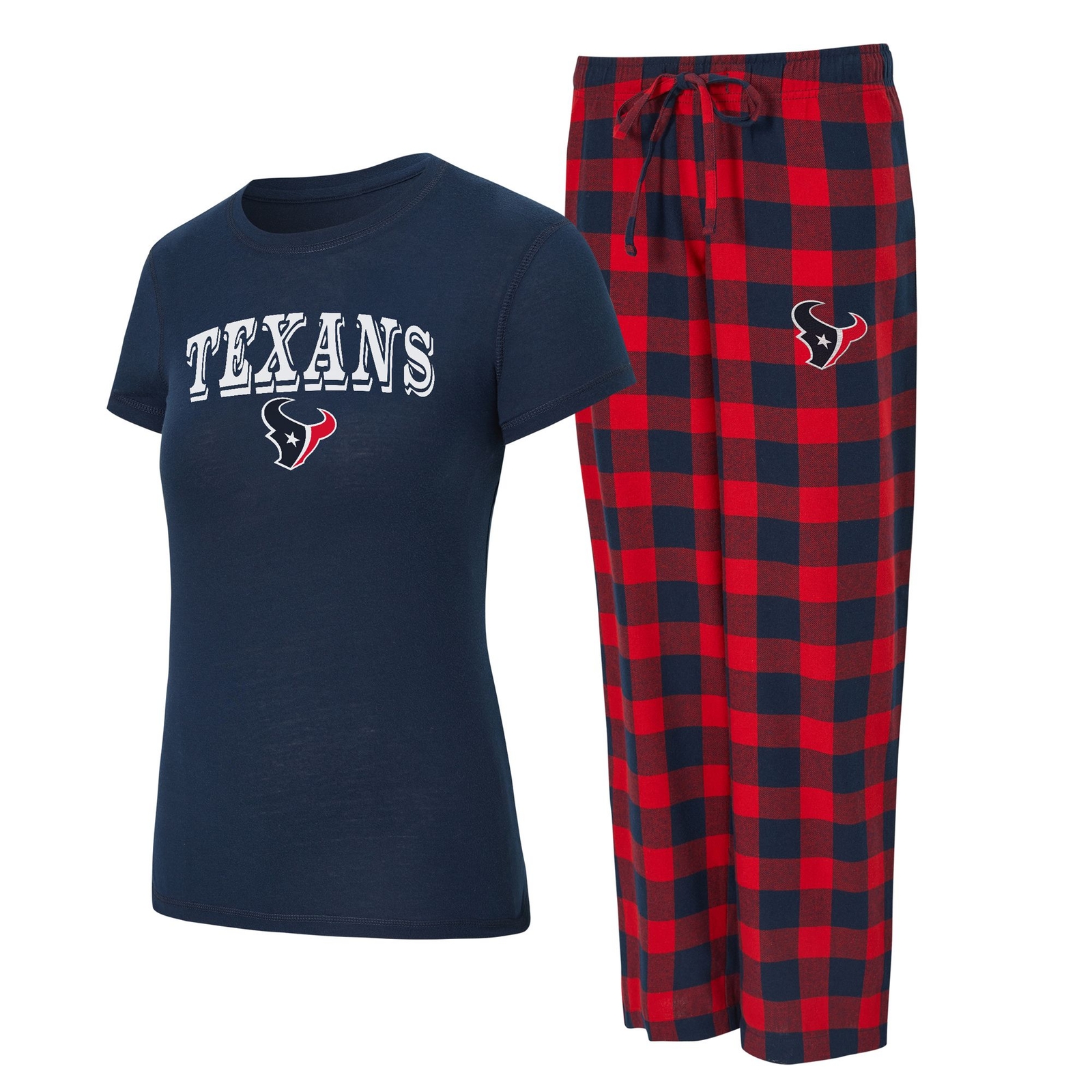 NFL Women's Avondale Short Sleeve Top and Pant Set (Size S) Houston Texans/Navy/Red, Cotton,Polyester,Rayon
