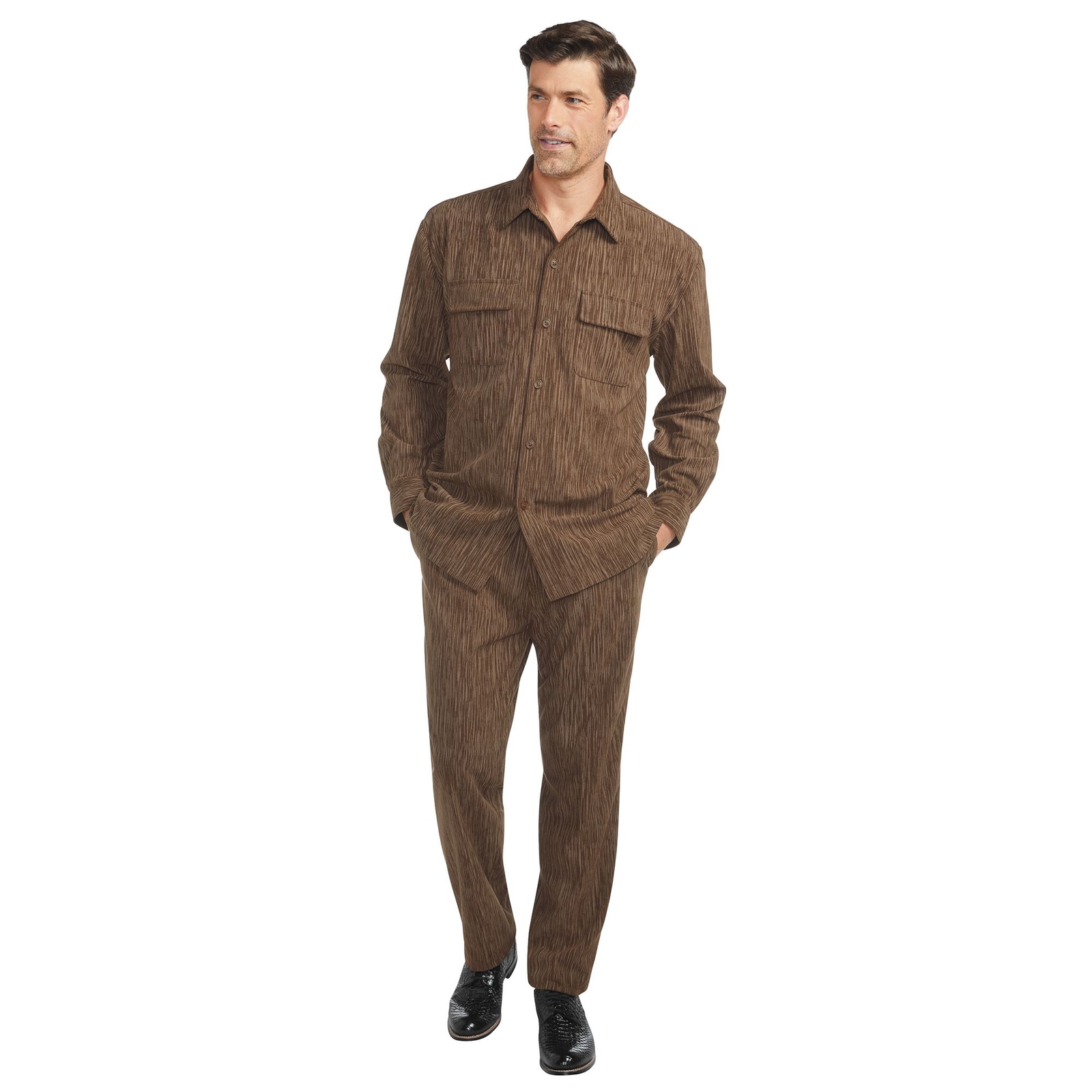*Corduroy set from Stacy Adams *Button-up top *Pant has a 34" inseam *Polyester *Size M fits a 34" waist *Size L fits a 36" waist *Size XL fits a 38"-40" waist *Size XXL fits a 42" waist *Size XXXL fits a 44"-46" waist *Size XXXXL fits a 48"-50"...
