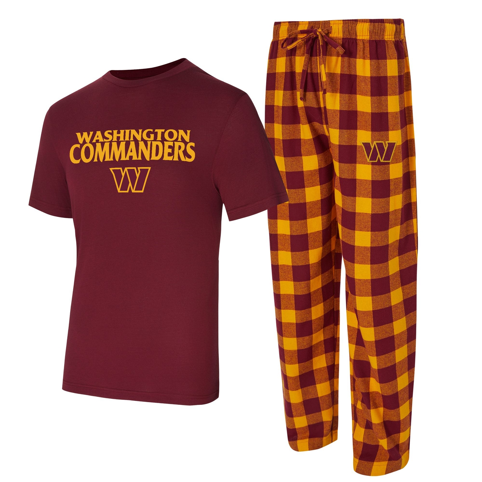 NFL Mens Avondale Short Sleeve Top and Pant Set (Size L) Washington Commanders/Maroon/Gold, Cotton,Polyester,Rayon