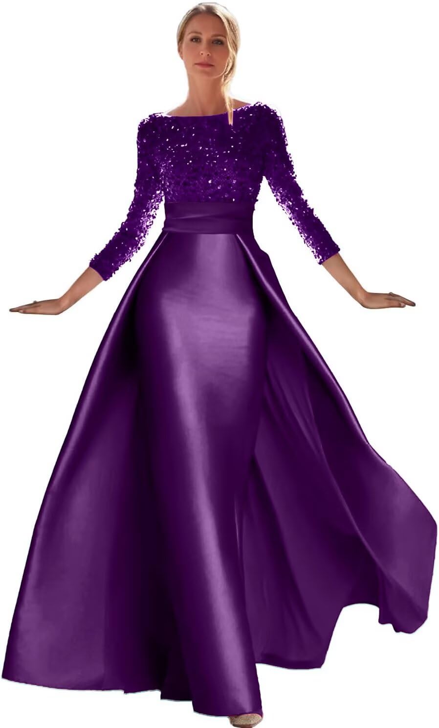 PUYIKET Long Sleeves Prom Dresses for Women 2026 Satin Sequin A Line Sparkly Formal Evening Gowns