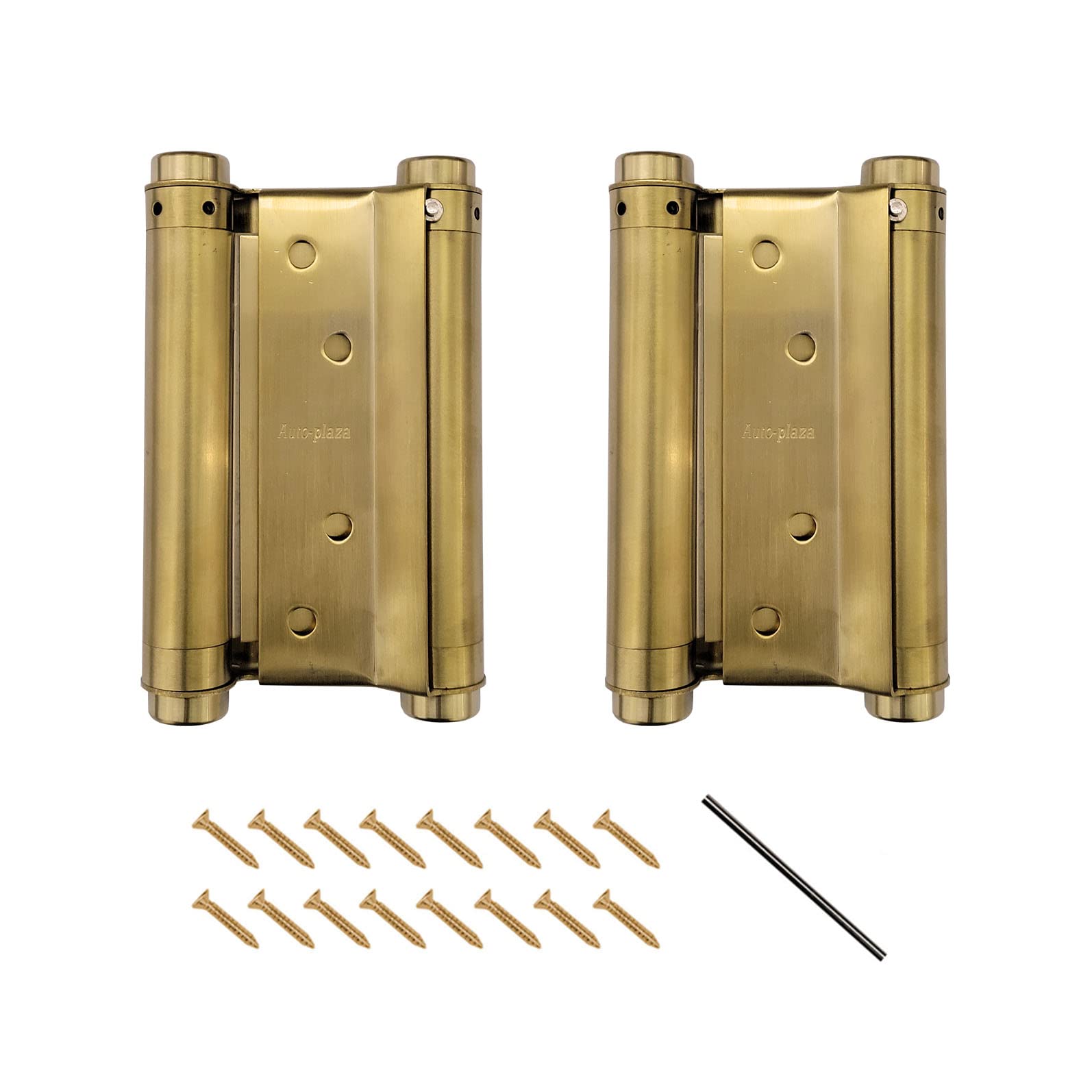 Pair of 5" Double Action Spring Hinge Stainless Steel Cafe Saloon Door Swing Self Closing Brass with Screws