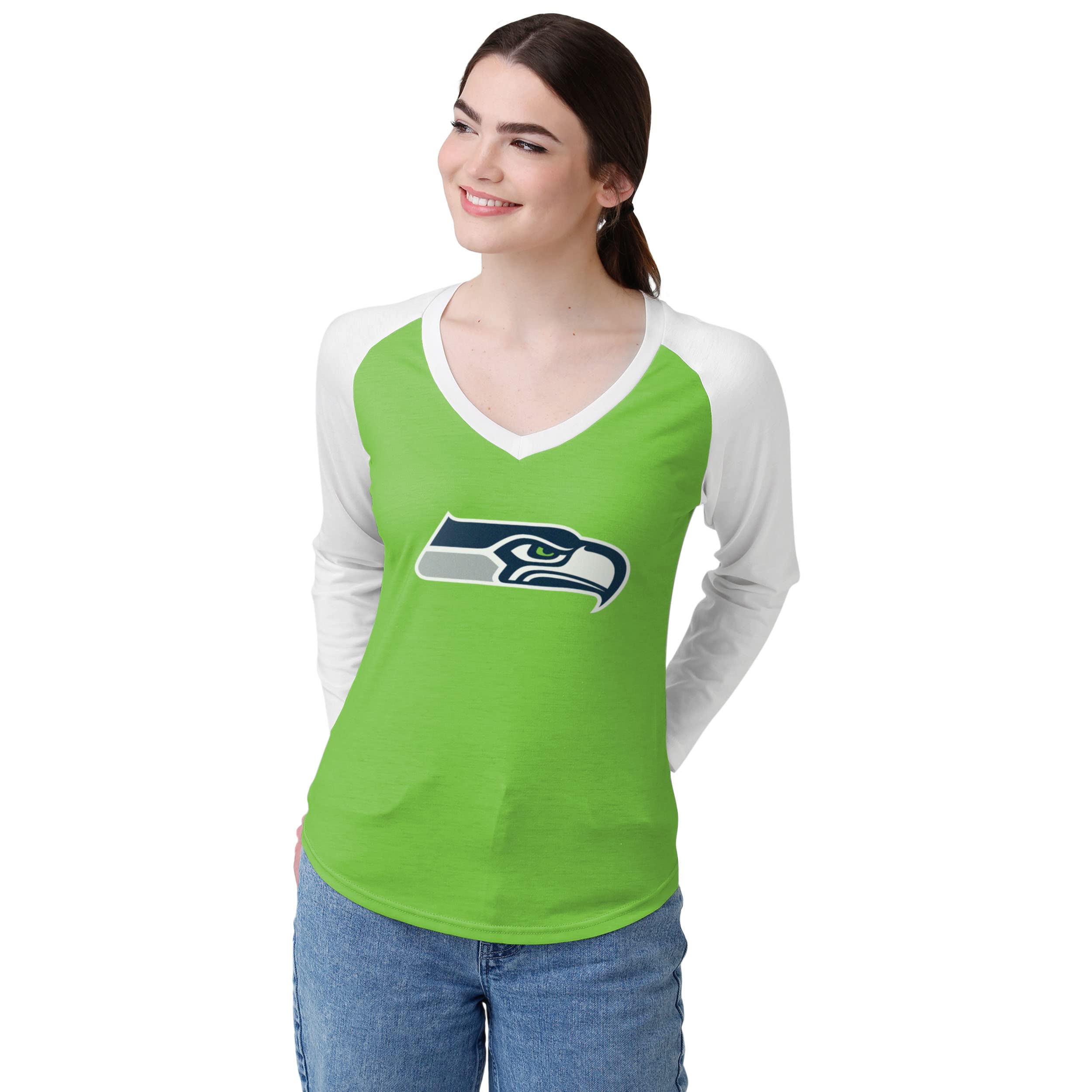 FOCO Womens NFL Team Logo Ladies Fashion Raglan Top Shirt