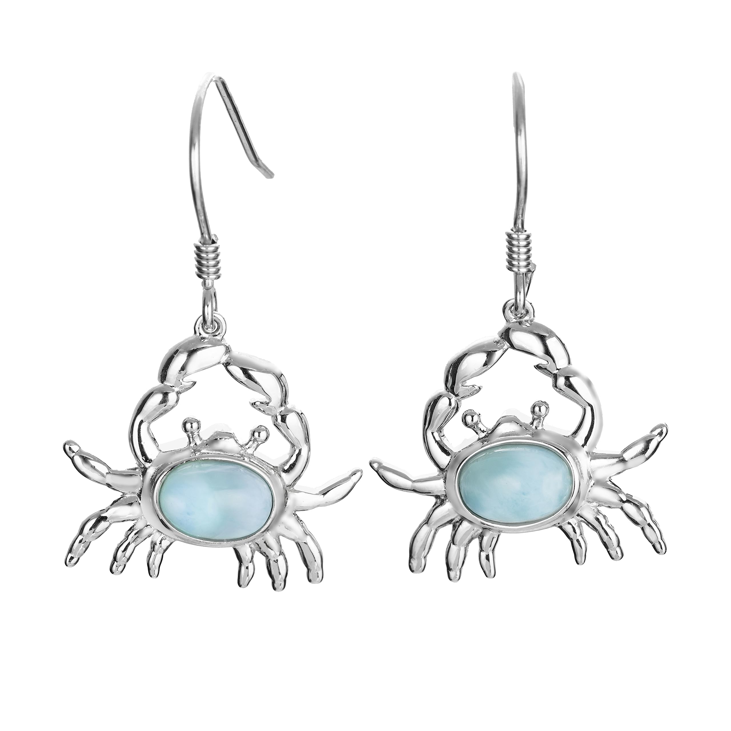 925 Sterling Silver Natural Larimar Crab Dangle Hook Earrings, Horoscope Zodiac, Nickel Free Hypoallergenic for Sensitive Skin, Gift Box Included