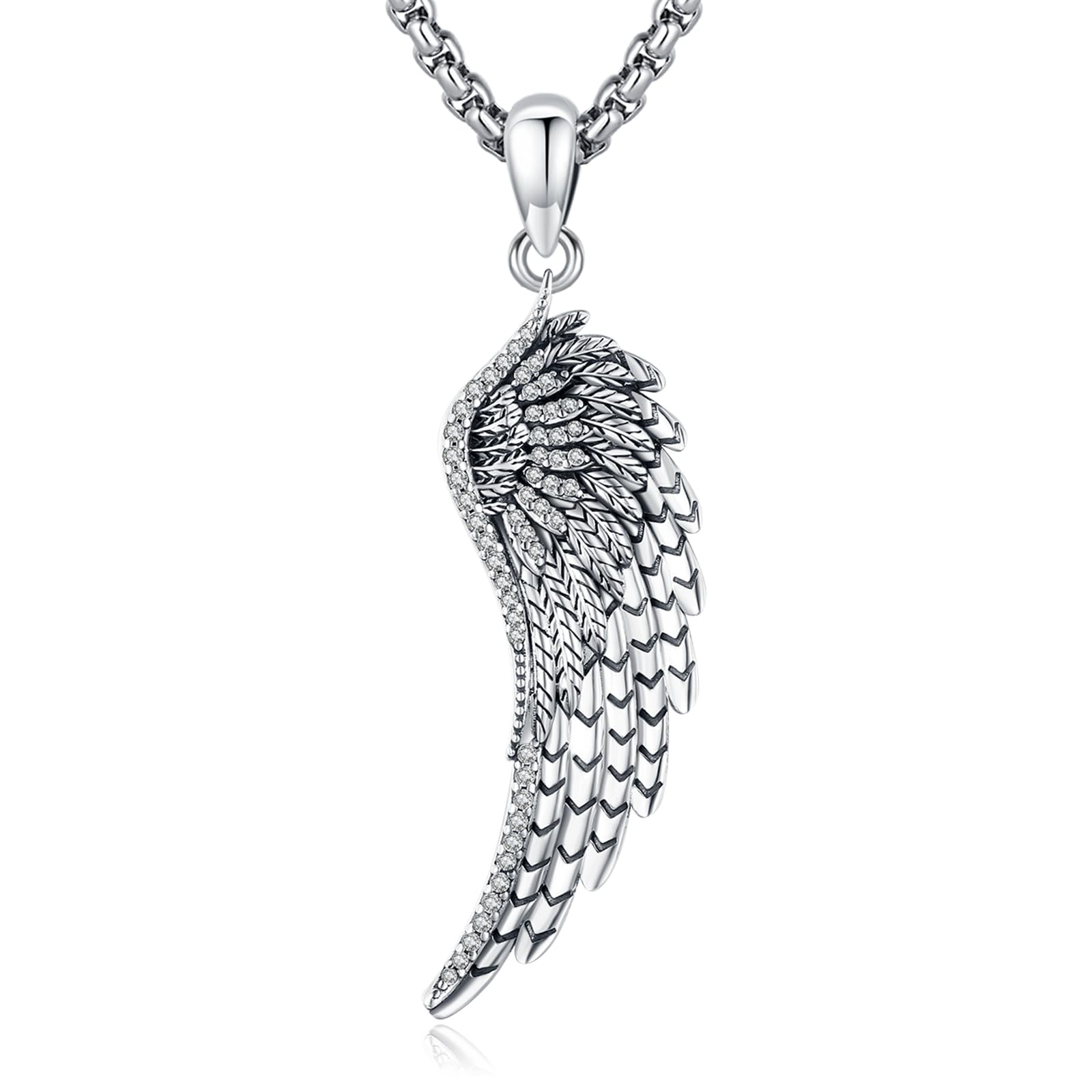 Angel Wing Meaning: Spirituality, protection, and love. Angels are thought of as benevolent celestial beings or guardian spirits who act as intermediaries between Heaven and Earth. You can wear this fantastic wing necklace of your chest, or give this beautiful pendant necklace to a special friend or