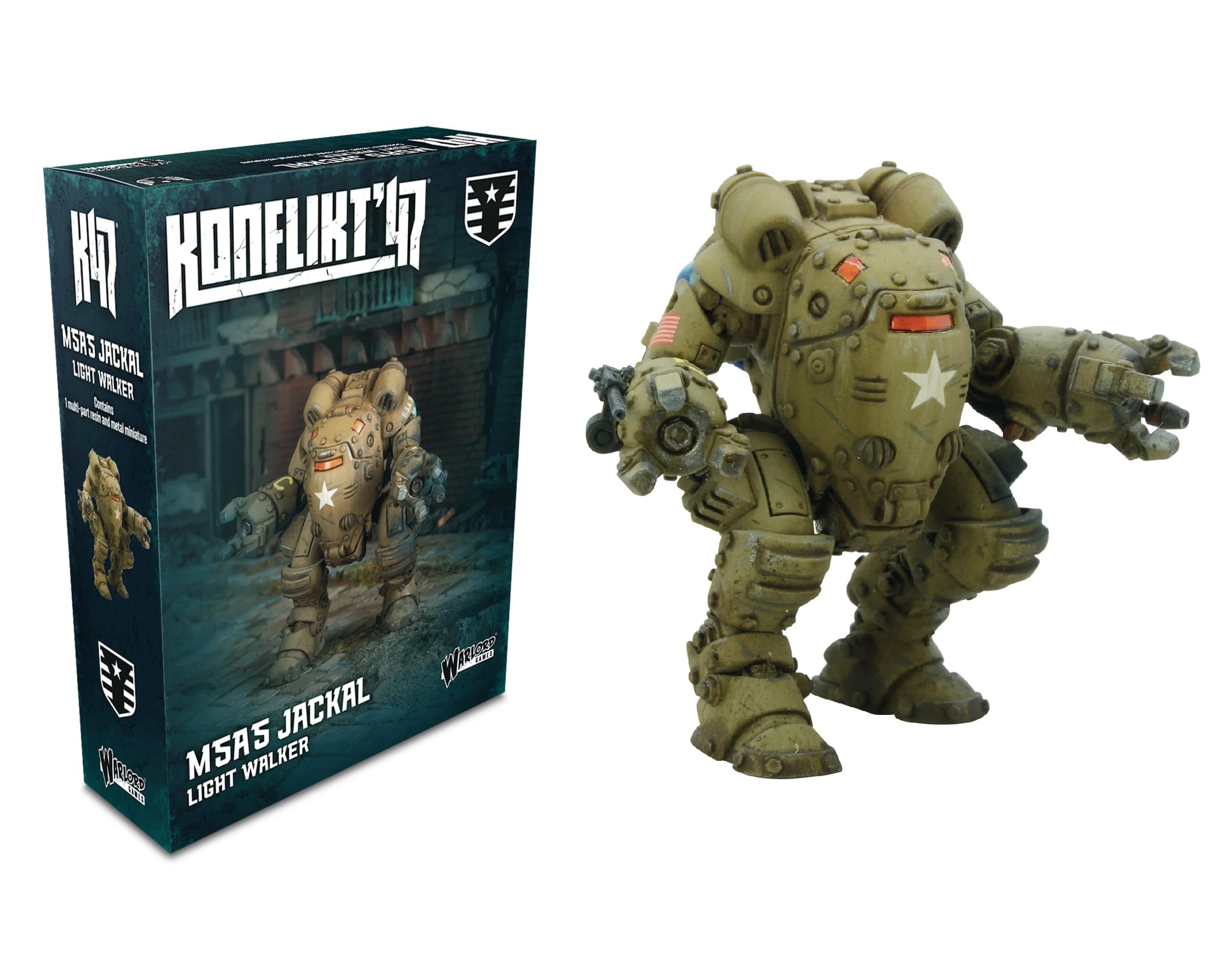 Includes Resin and Metal M5A5 Jackal Light Walker Miniature Includes Decal Sheet Models supplied unassembled and unpainted. Warlord Games: Konflikt '47: United States: M5A5 Jackal Light WalkerM5A5 JACKAL LIGHT JUMP WALKER The Jackal variant of the original Coyote uses new Rift-tech repulsor