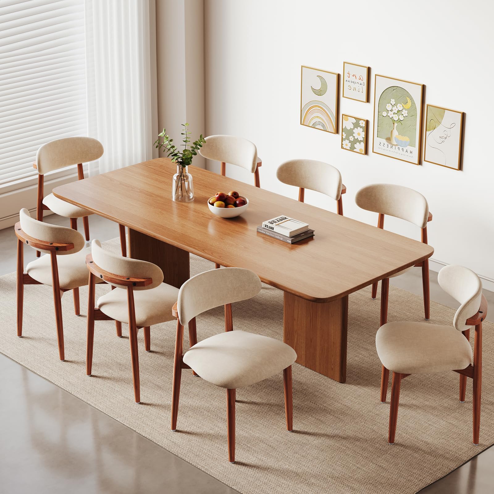 EURUIS Modern Wooden Dining Chairs Set of 8, Fabric Upholstery Kitchen Chairs Farmhouse Dining Room Side Chairs for Restaurants, Cafes, Patio, Easy