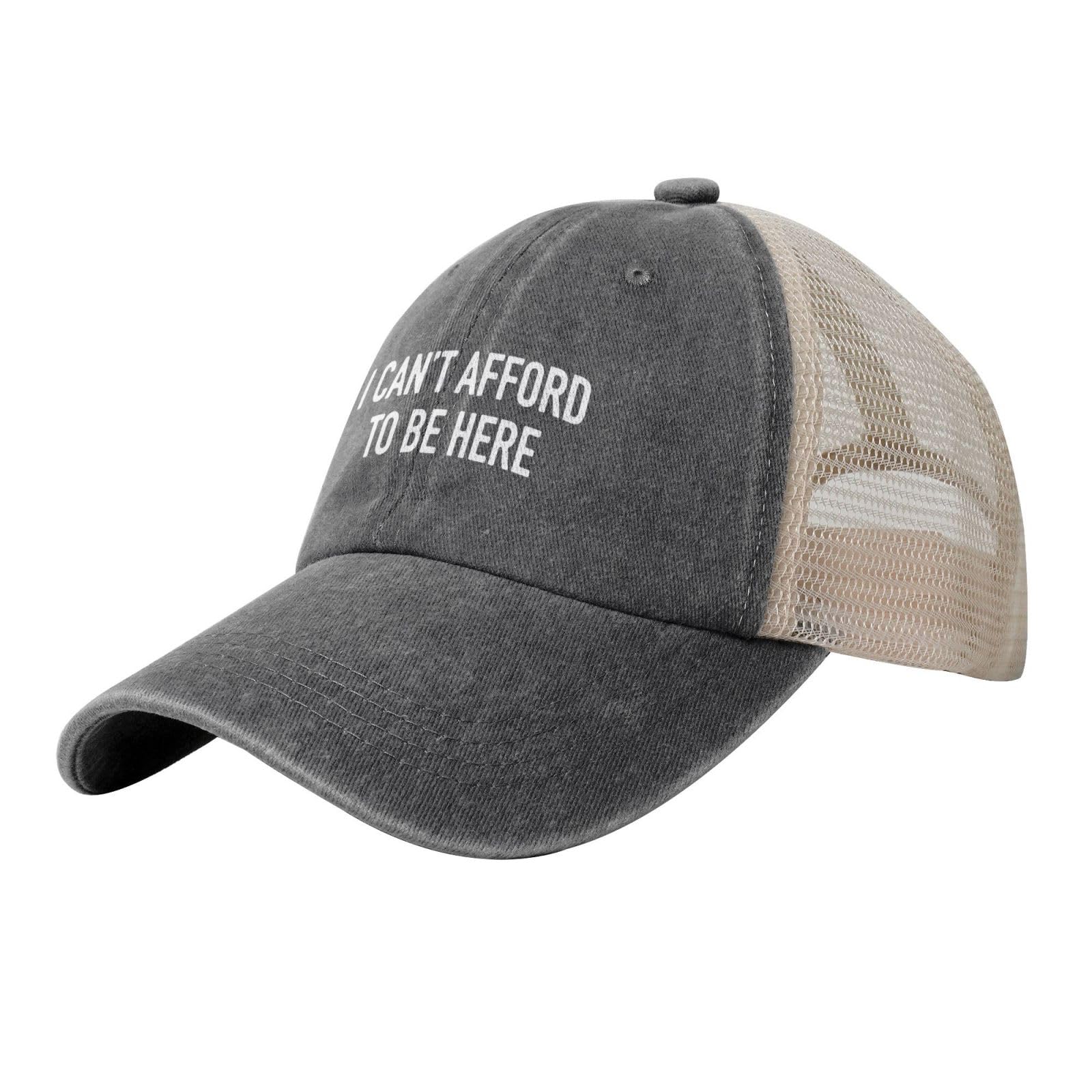 KLIUXBF I Can't Afford to Be Here Hat Mesh Baseball Cap Men Women Vintage Washed Distressed Trucker Hat Black