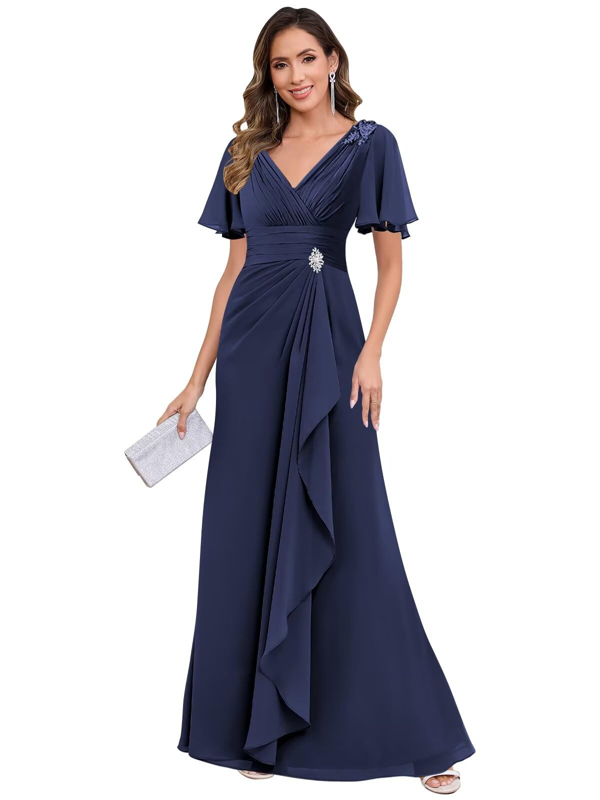 POMUYOO Mother of the Bride Dresses for Wedding Chiffon Long Formal Evening Gowns for Women Floor Length