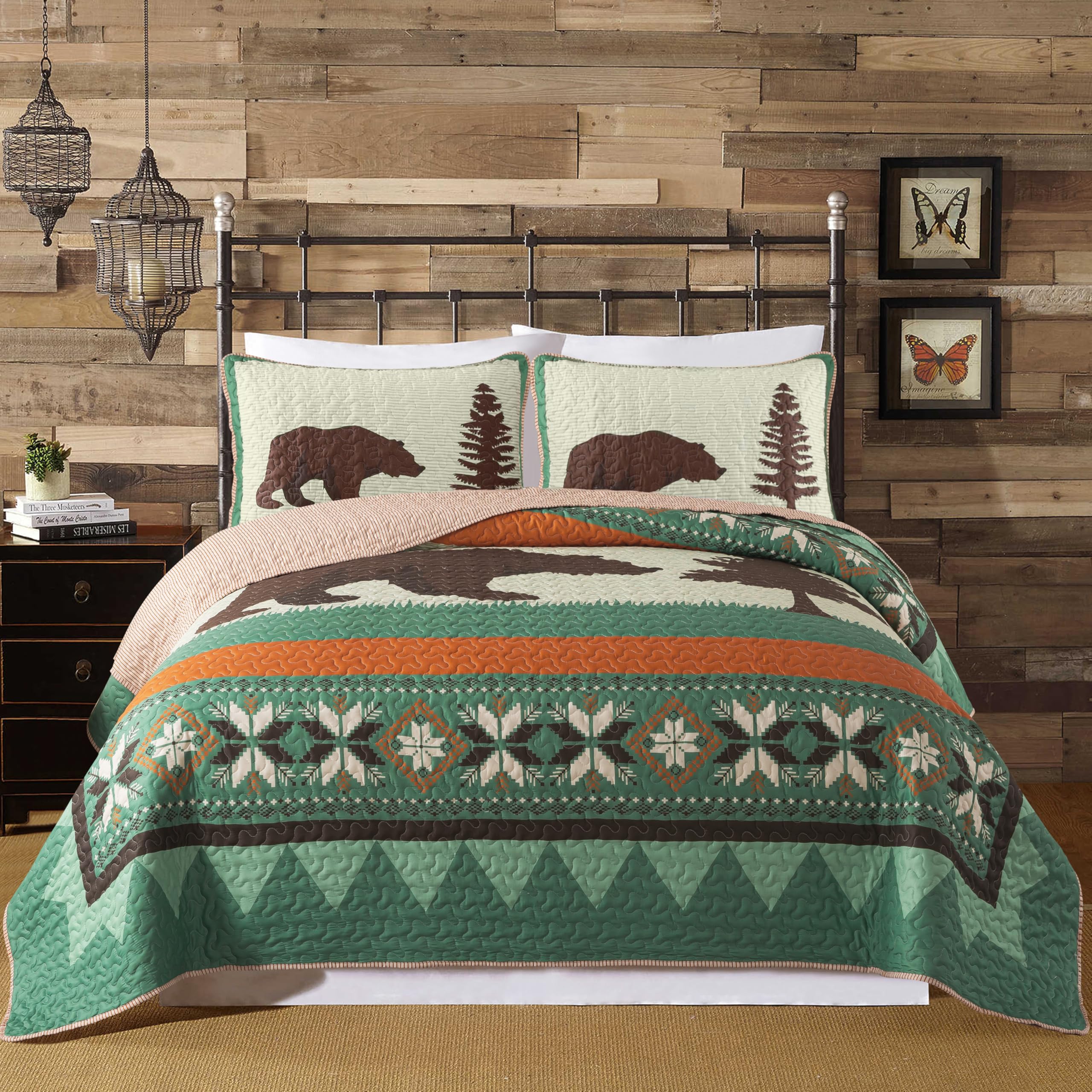 WARM AND COMFY BEAR QUILT: This wilderness bedding set offers warmth, comfort and irresistible character. It will elevate a master bedroom, guest room or mountain retreat with its stylish look and feel. BRING THE GREAT OUTDOORS INSIDE: Our lodge quilt set is ideal for those who appreciate the beauty