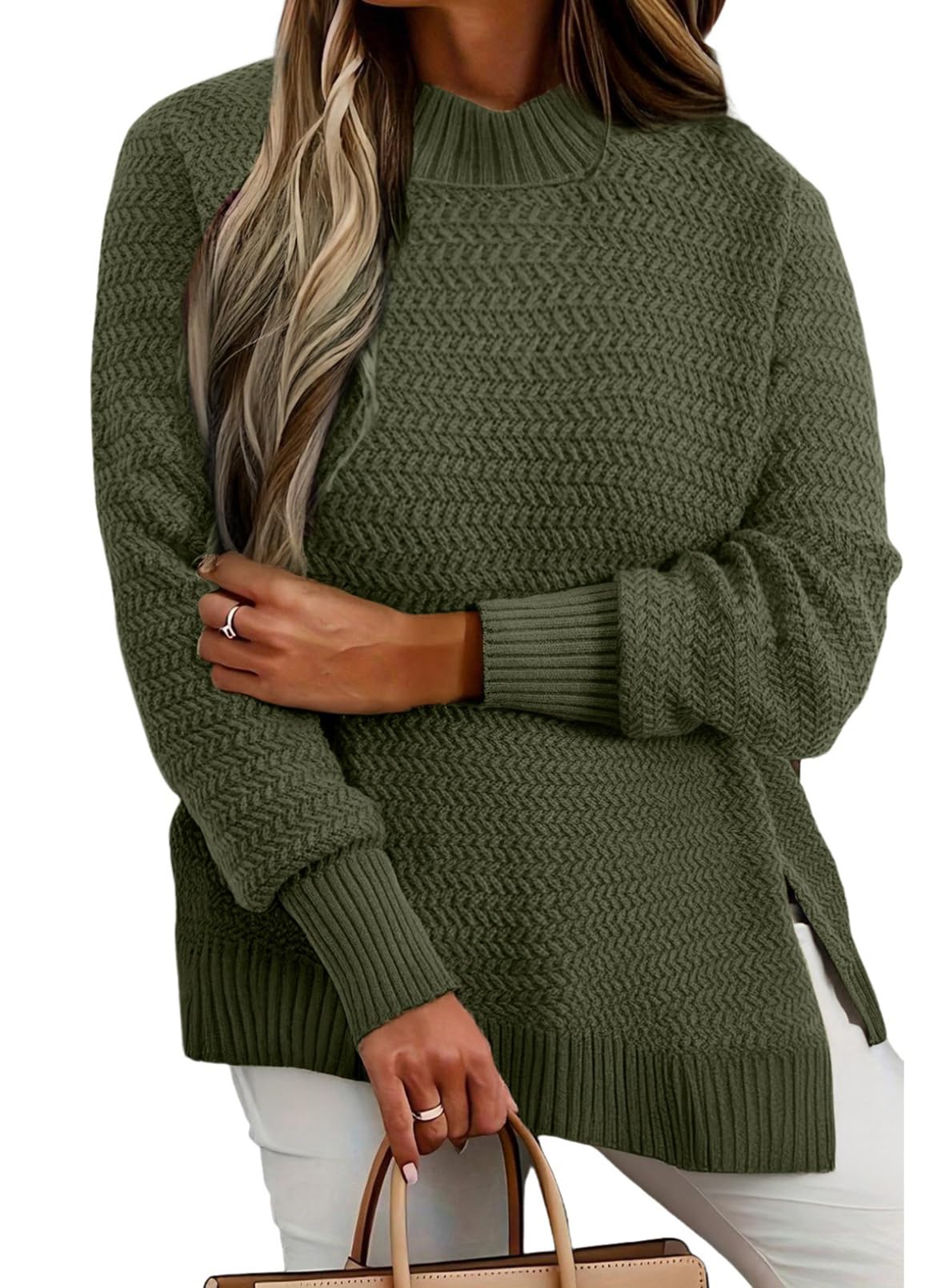 Material:Plus size pullover sweater is made of 100%Acrylic,soft and cozy knit fabric.Womens plus size light weight tunic sweater more friendly to skin,warm for Autumn or Winter Feature:Plus size sweater for women,crew neck,solid color,loose fit,side slit,oversized jumpers for women.Oversize tunic sw