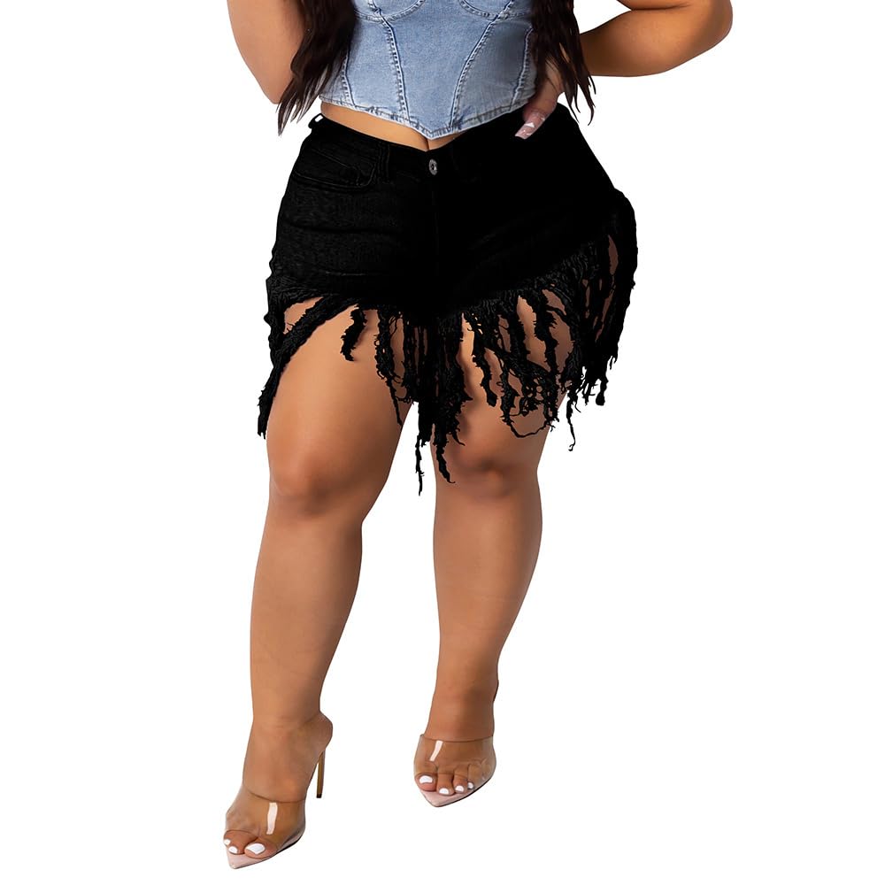 MATERIAL: Plus Size Denim Shorts Are Made Of High Quality Denim. This Fabric Has Durability And Comfort, While Also Having Some Flexibility To Provide A Better Wearing Experience. DESIGN: Plus Size Fringe Shorts Feature With Zipper Fly, Button Closure, Washed And Functional Pockets.High Waisted Jean