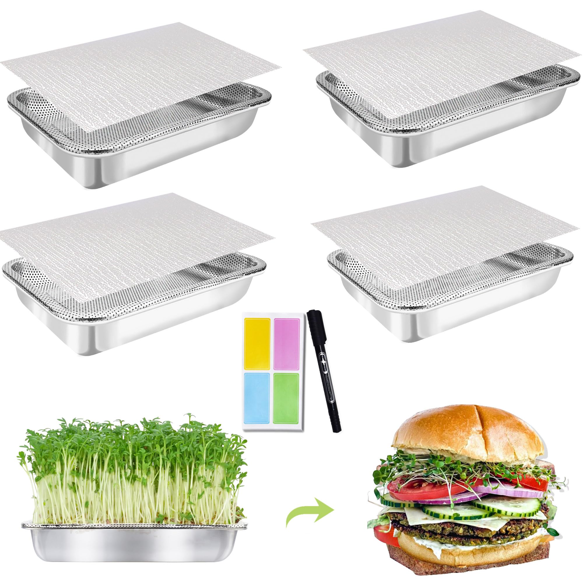 Sprouting Tray Kit 4 Set: TCYPUHL Seed Trays Kit includes a 4-tier stainless steel seed sprouting kit. Each kit consists of 4 area of 10.4 " by 7.67 " sprouting trays, along with instructions and 4 stainless steel filters equipped with encrypted mesh layers. Ideal for beans, broccoli sprouts, alfalf