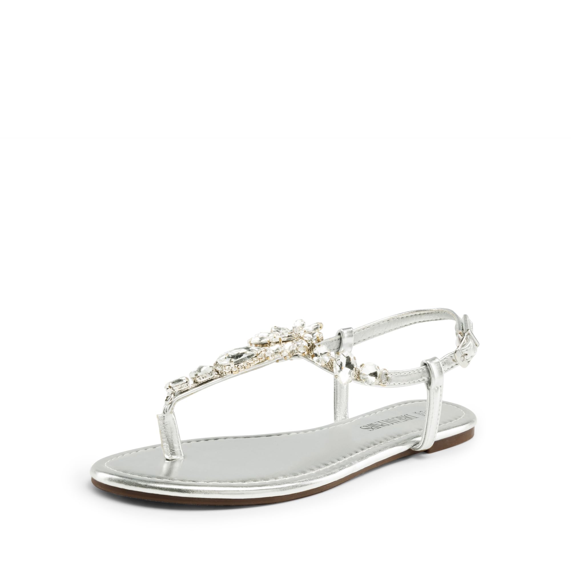 DREAM PAIRS Flat Sandals for Women Dressy Rhinestone T-Strap Thong Flat Sandals for Summers Dress Beach