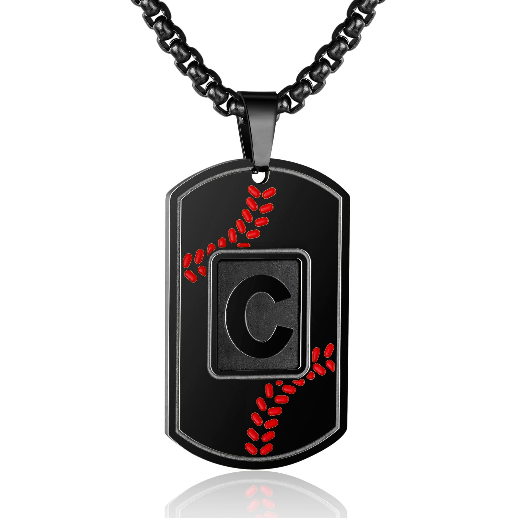 A-Z Dog Tag Necklace for Men - Baseball Charm Pendant, Stainless Steel Chain 22+2 Inches, Personalized Sports Athletes Jewelry Gift