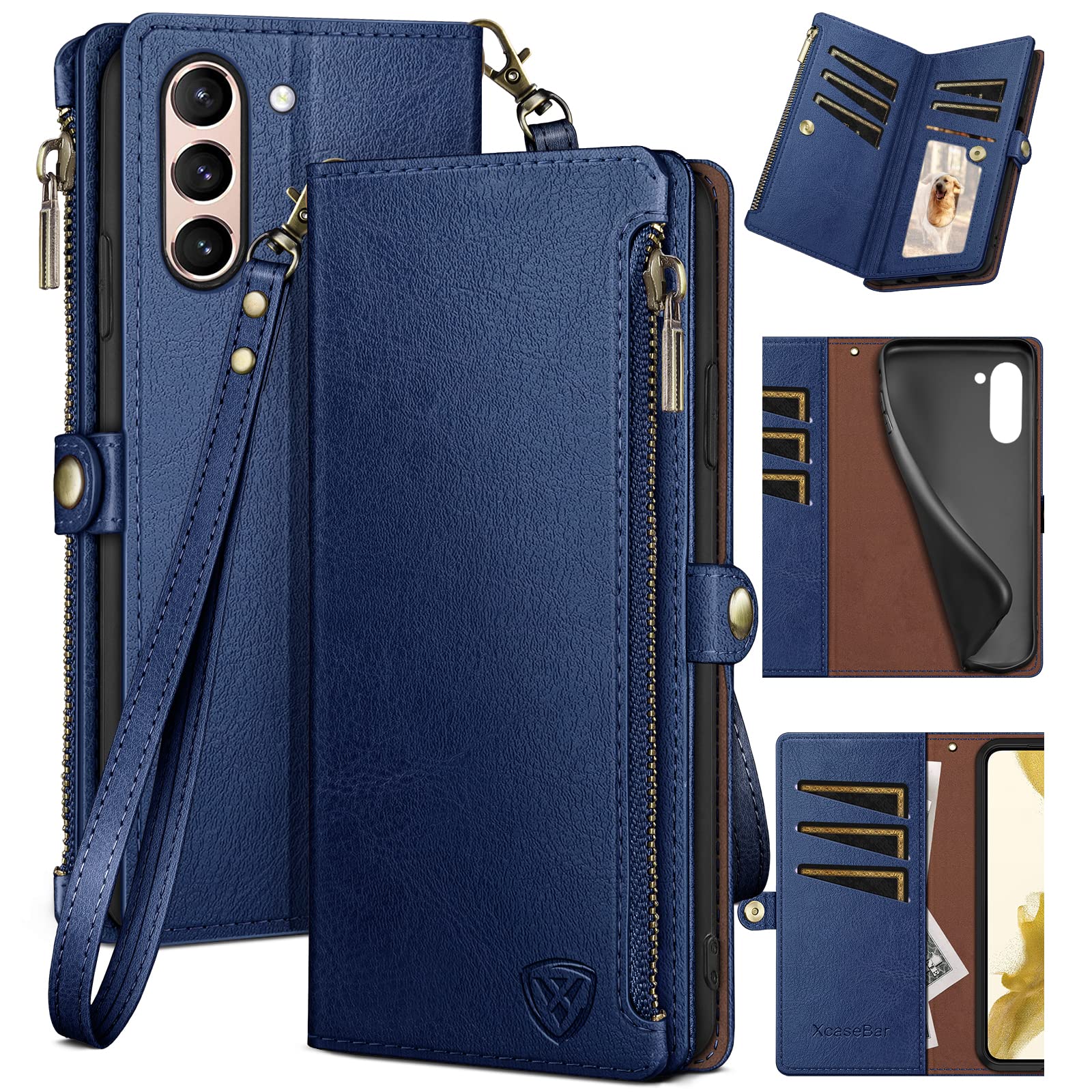 XcaseBar for Samsung Galaxy S21 FE Wallet case with Zipper Credit Card Holder【RFID Blocking】, Flip Folio Book PU Leather Phone case Shockproof Cover