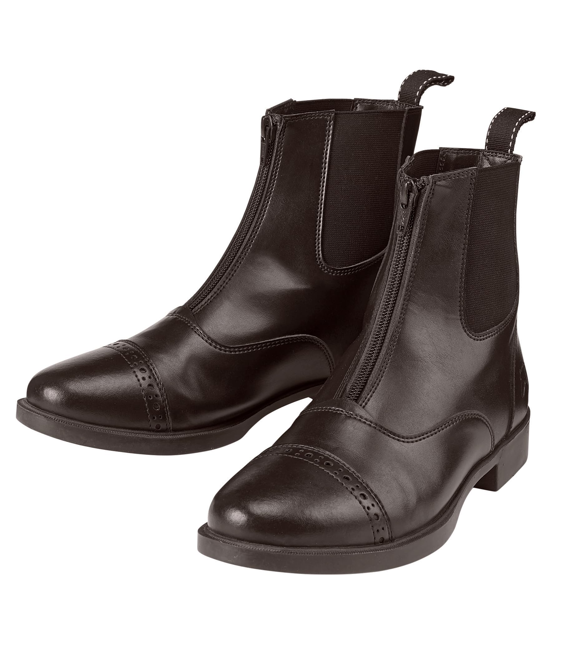Features easy-care synthetic leather upper that wipes clean with a damp cloth Traditionally styled with punched toe cap, elastic twin gore and spur rests Front zipper and rear pull tab allow easy on/off Built on a rubber outsole offers traction in and out of the irons Great holiday gift for yourself