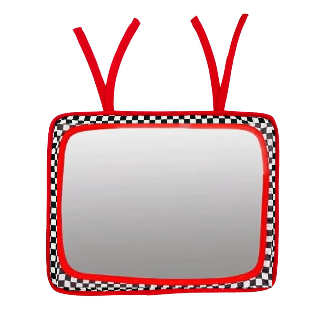 Baby Mirror for Crib or Car measures 14.5" x 10" and comes with portable carrying and storage case. Great size to use as crib mirror or in the car to keep baby entertained during car rides. This easy to attach mirror for baby comes with string ties that can be easily looped around crib rails, behind