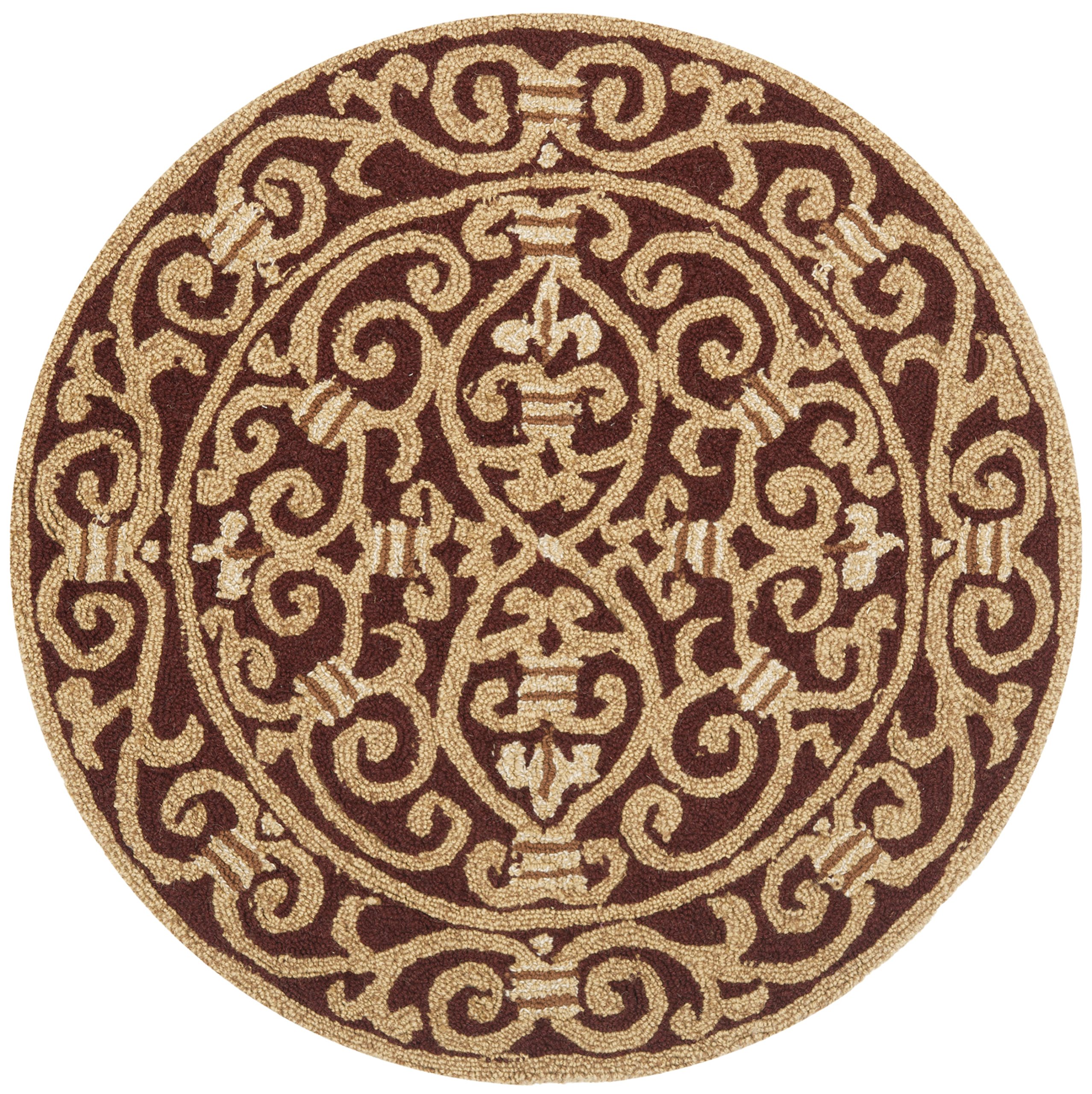 SAFAVIEH Chelsea Collection 4' Round Burgundy HK11C Hand-Hooked French Country Wool Area Rug