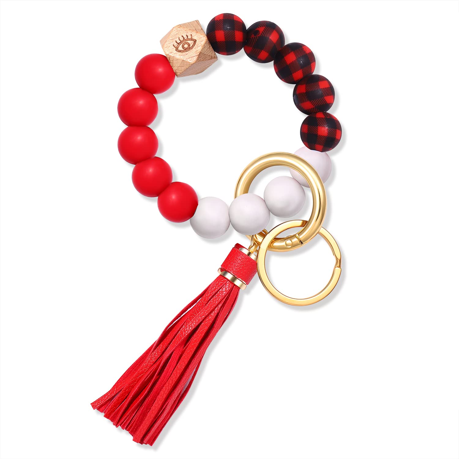 boderier Silicone Bracelet Keychain Wristlet Bangle Keyring Portable House Car Keys Ring Holder W/Tassel