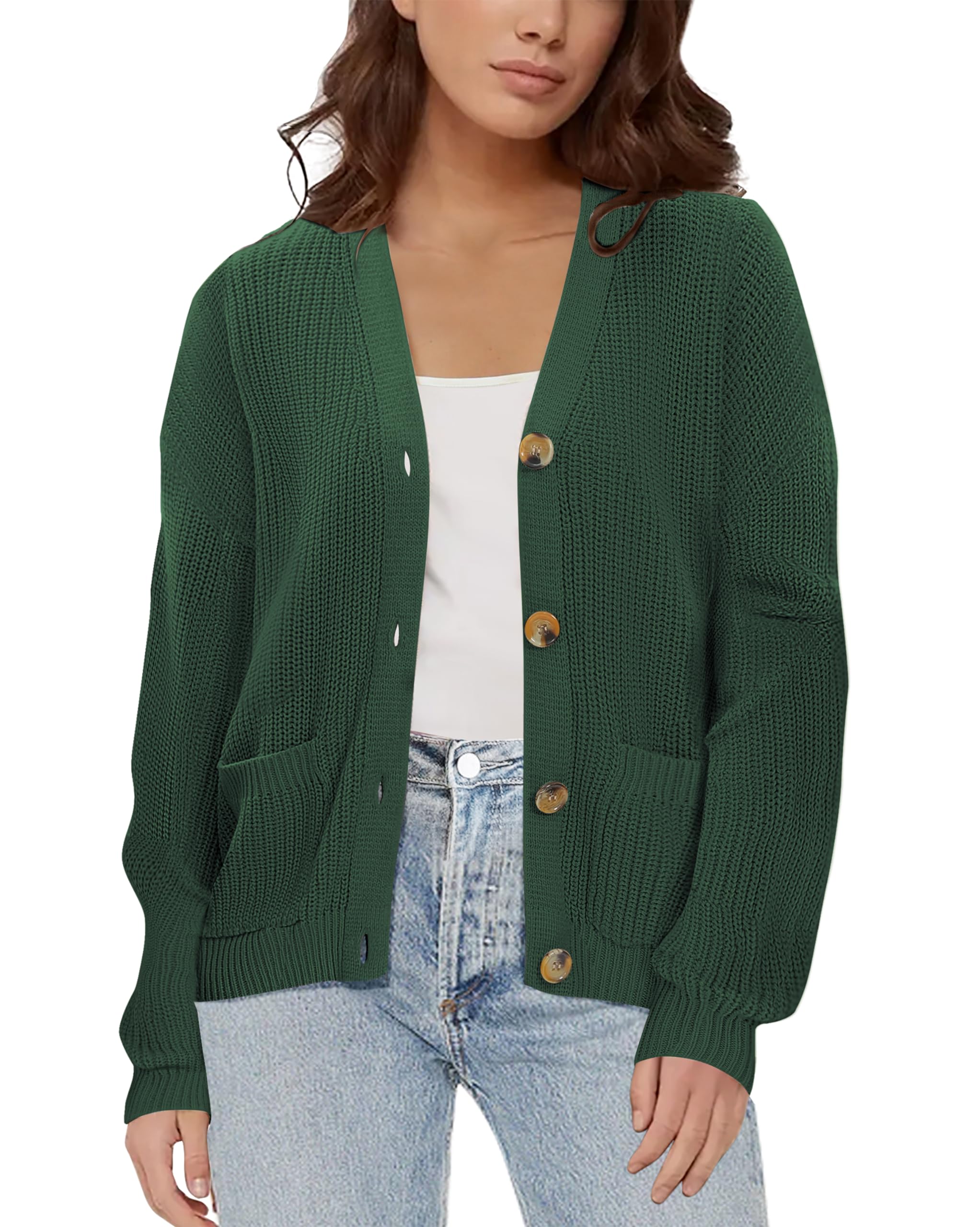 Urban CoCo Women's Lightweight Knit Open Front V-Neck Long Sleeve Button Down Casual Cardigan with Pockets