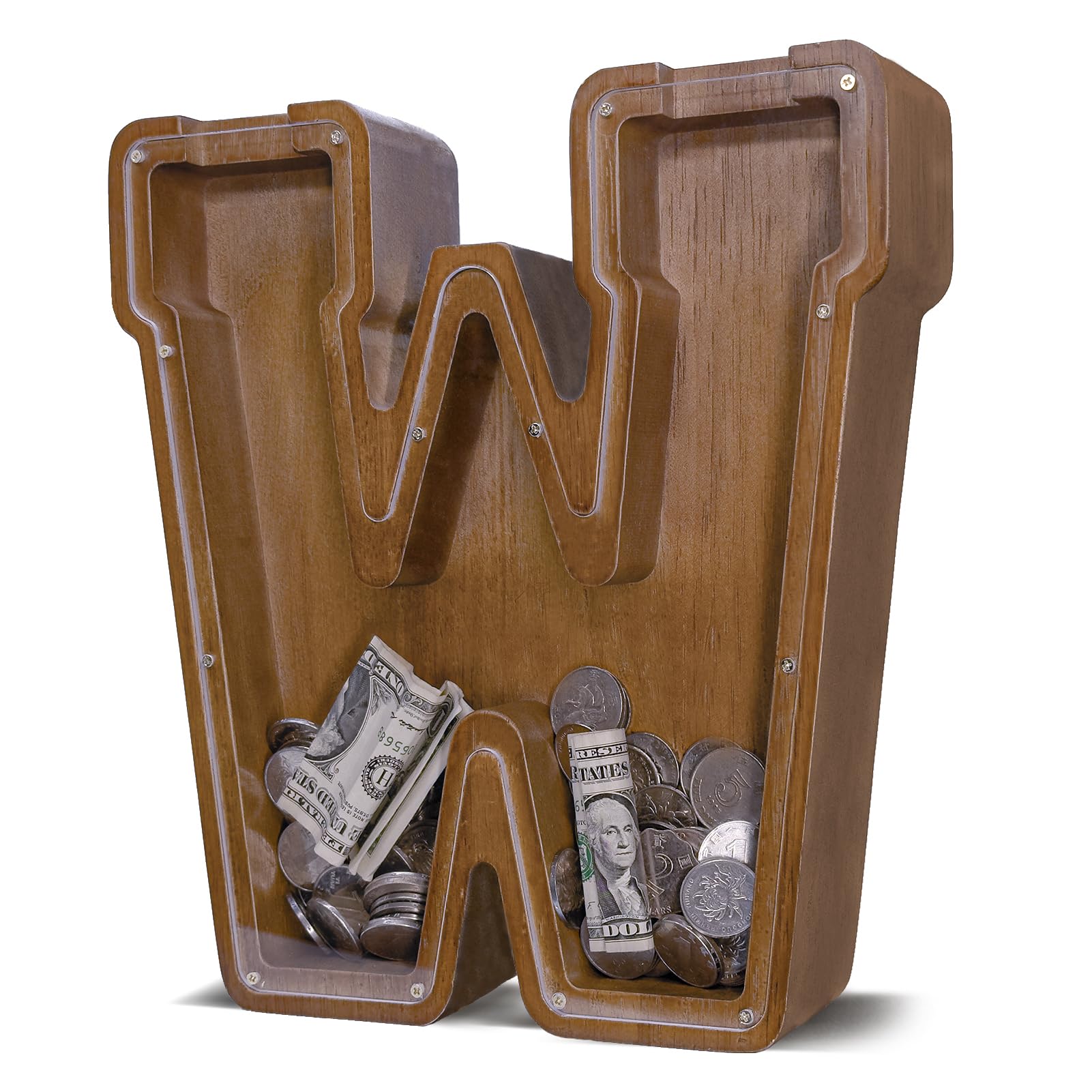 JOOMLAFLY Wooden Letter Piggy Bank for Kids Larger Letter Piggy Bank for Boys and Girls Personalized Piggy Bank Initial Coin Bank Wood Kids Money Bank