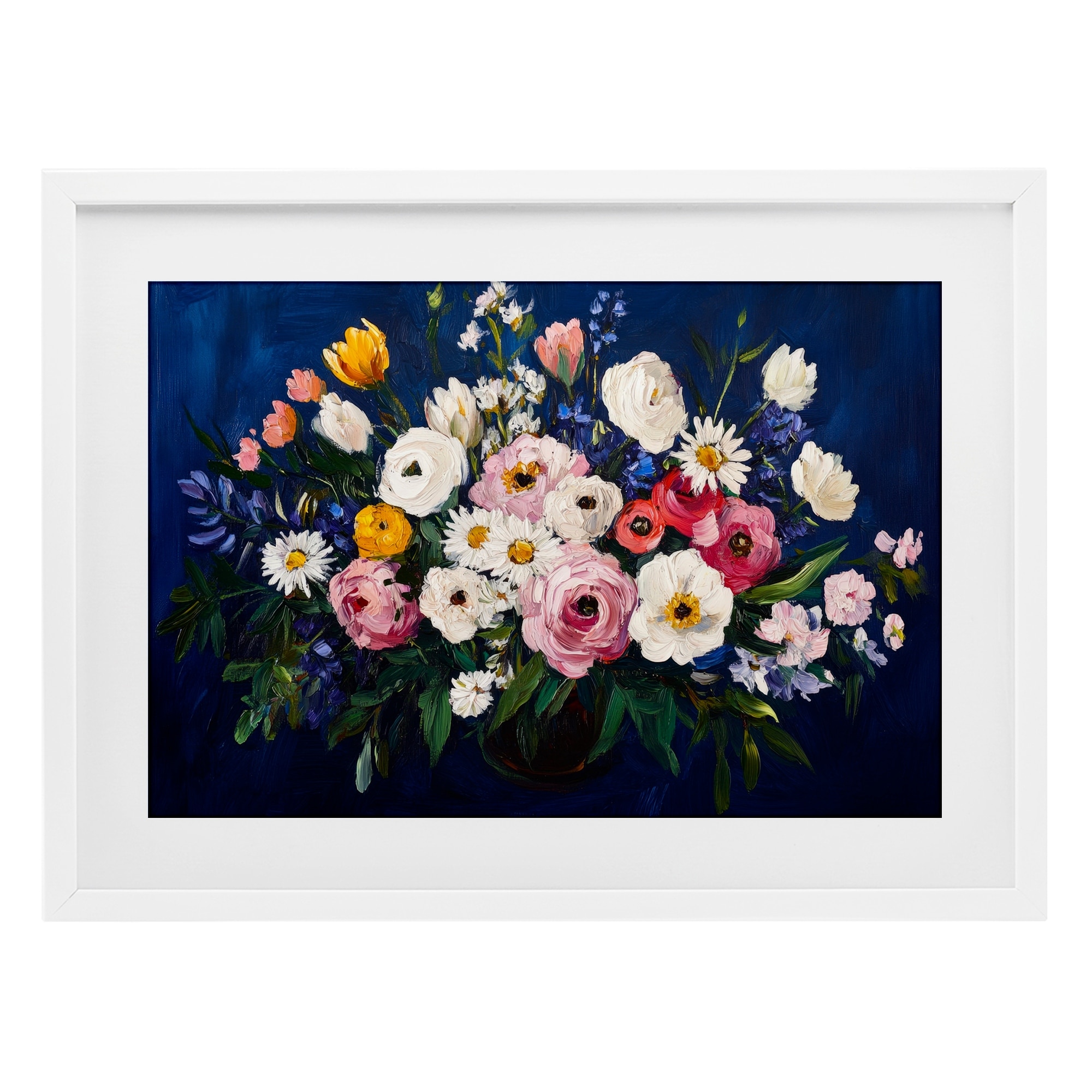 Stupell Vibrant Florals over Deep Blue Under Glass Framed Design By Petal Prints Design