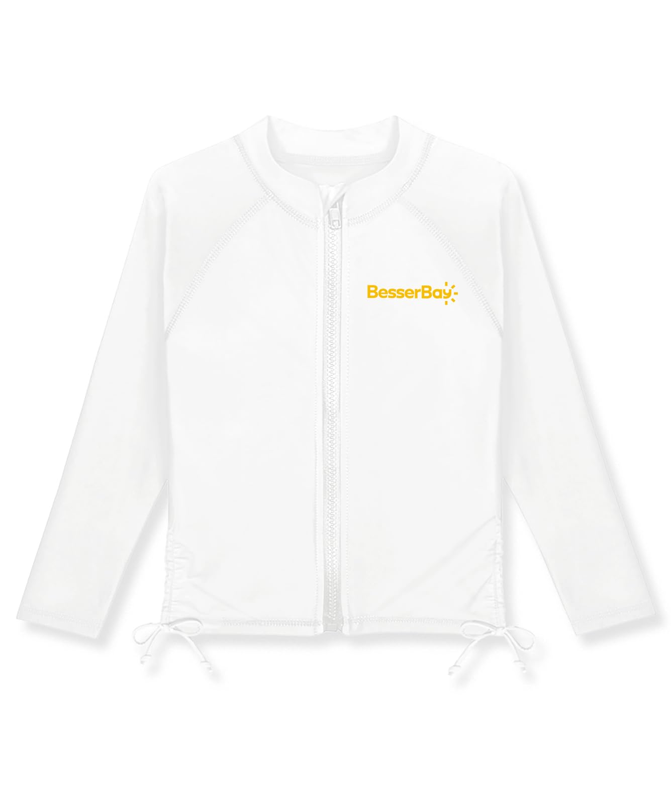 BesserBay Girls Rash Guard UPF 50+ Zip Up Raglan Long Sleeve Adjustable Drawstring Swim UV Jacket 4-14 Years