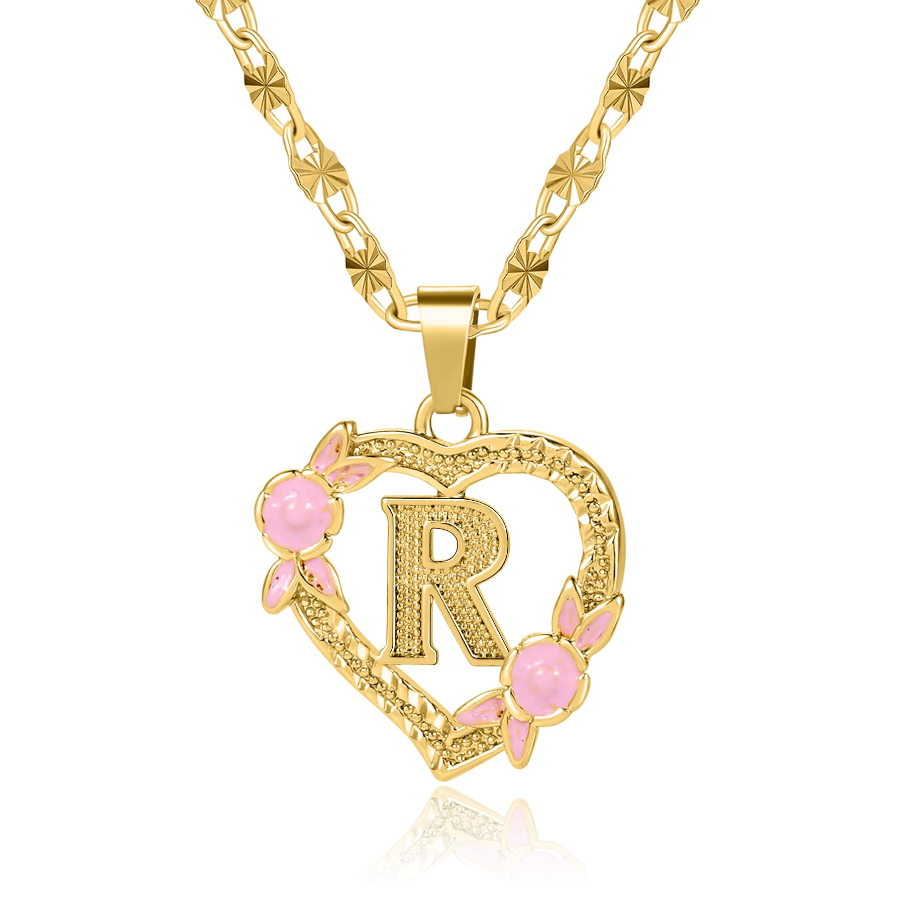 Qitian Initial Heart Necklace for Women Heart Gold Letter A-Z Name Alphabet Pendant Necklace for women Gift