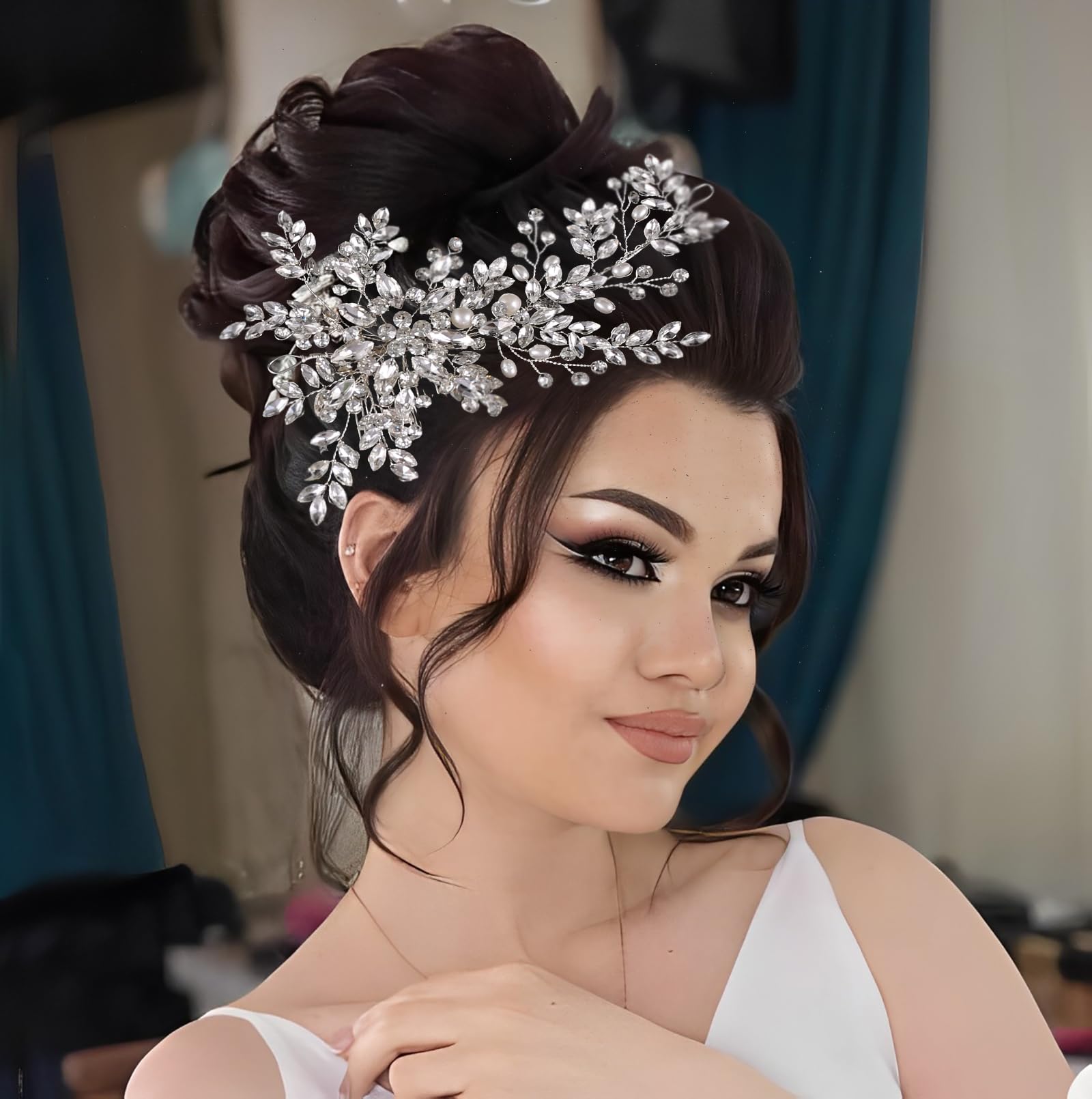 WEZTEZ Rhinestone Bridal Hair Comb Crystal Wedding Headbands Head Pieces,Pearl Brides Bridesmaid Hair Accessories for Women Girls (Sliver 936)
