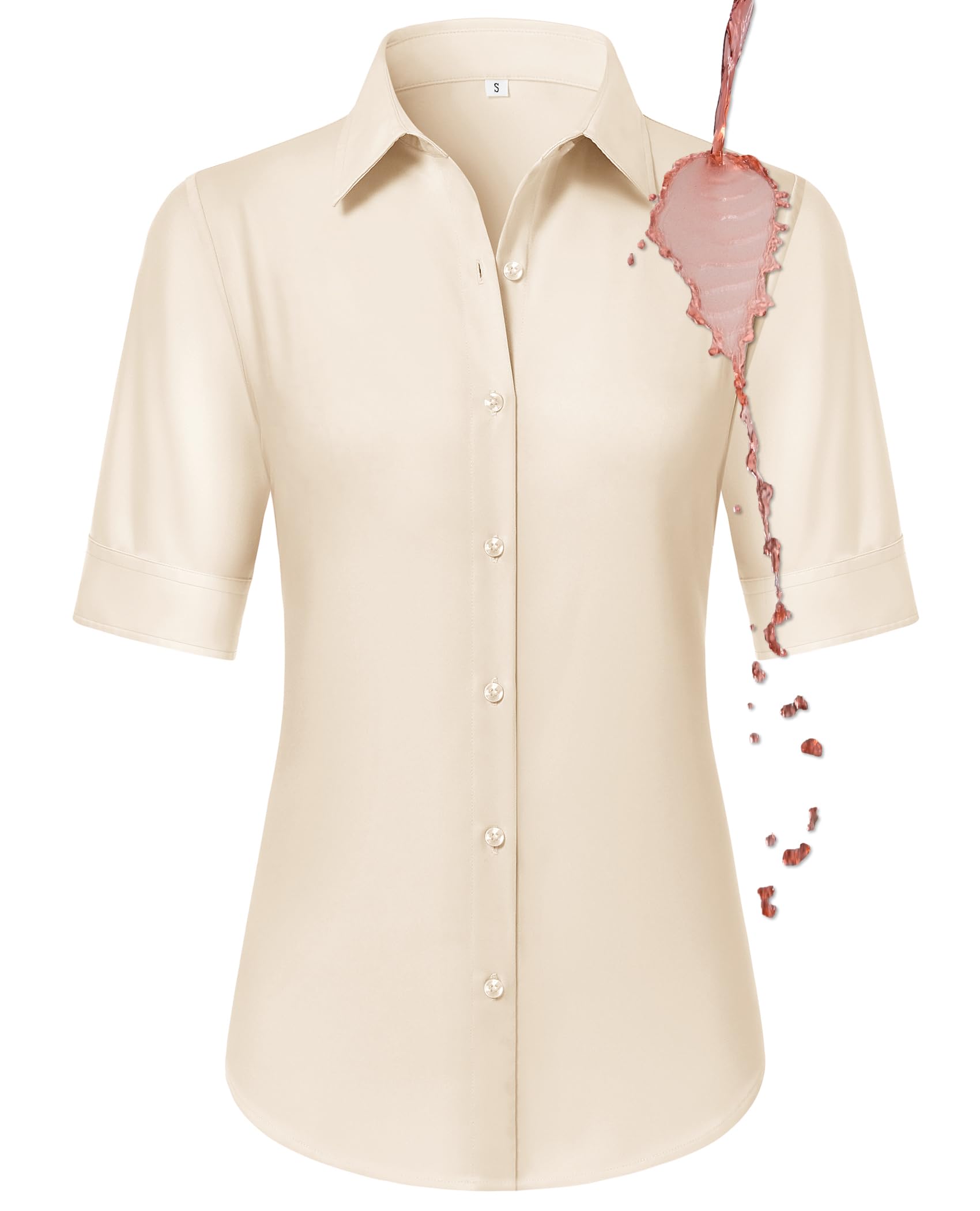 Gleeivy Button Down Shirts for Women Fitted Short Sleeve Dress Shirt Collared Blouses Work Tops Wrinkle Free