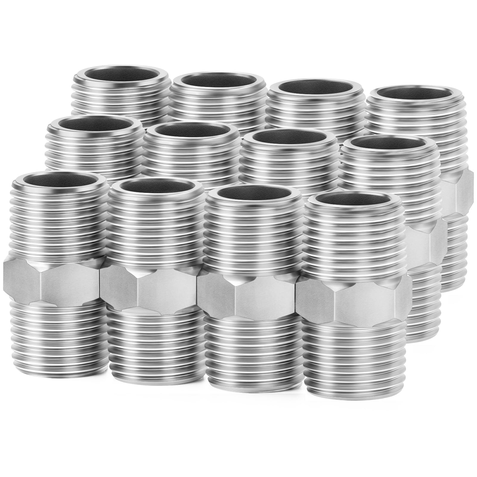 ChillWaves 304 Stainless Steel Pipe Fitting, Hex Nipple 1/4" NPT Male x 1/4" NPT Male Thread Adapter(12-PACK)