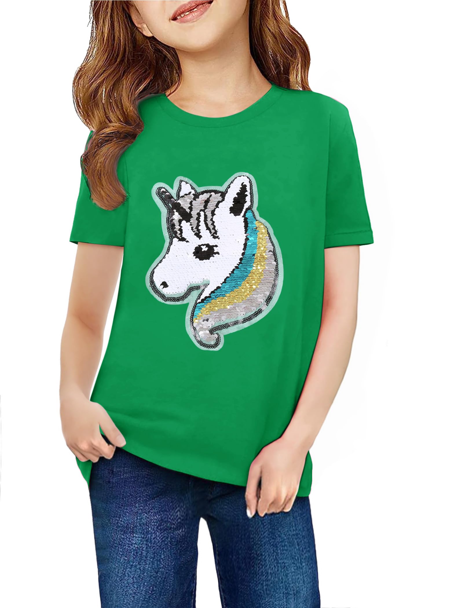 Arshiner Girls Unicorn Shirts Short Sleeve Flip Sequin T-Shirt Tops