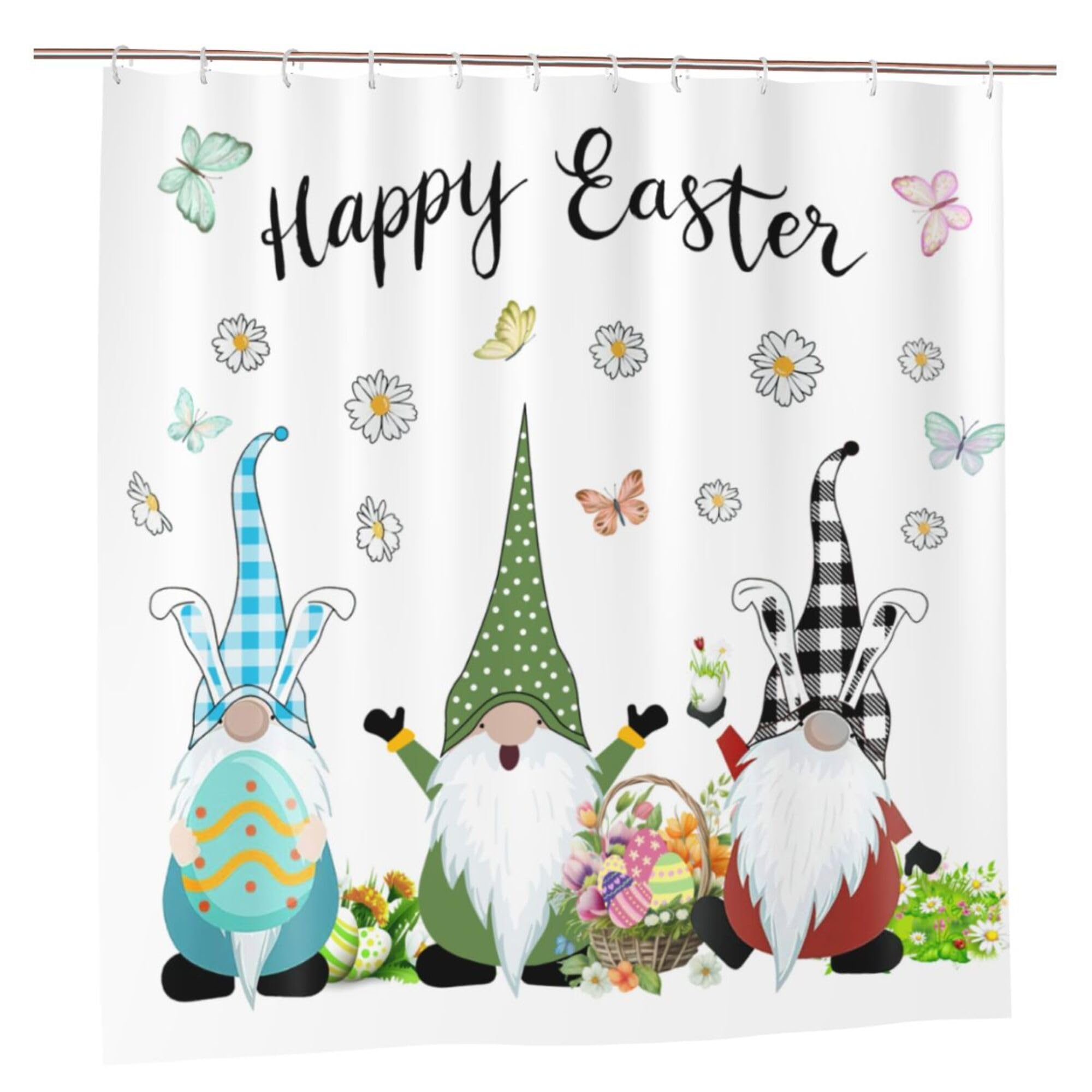 Easter Shower Curtains for Bathroom Easter Eggs Daisy Gnome Flower Butterfly Shower Curtain Waterproof Bathroom Curtain with 12 Hooks Machine Washable