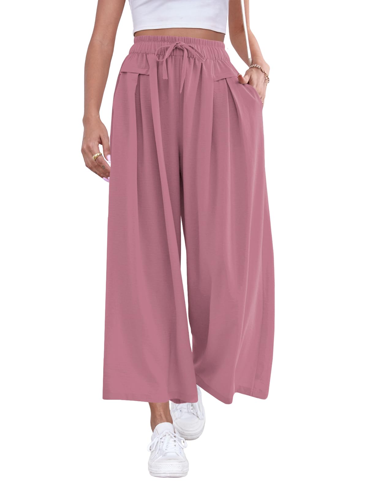 Material: These wide leg pants are crafted from 100% polyester, offering a lightweight and breathable fabric for maximum comfort; We have prioritized product quality by choosing a skin-friendly material to ensure a pleasant wearing experience Features: These womens summer palazzo pants have a high w