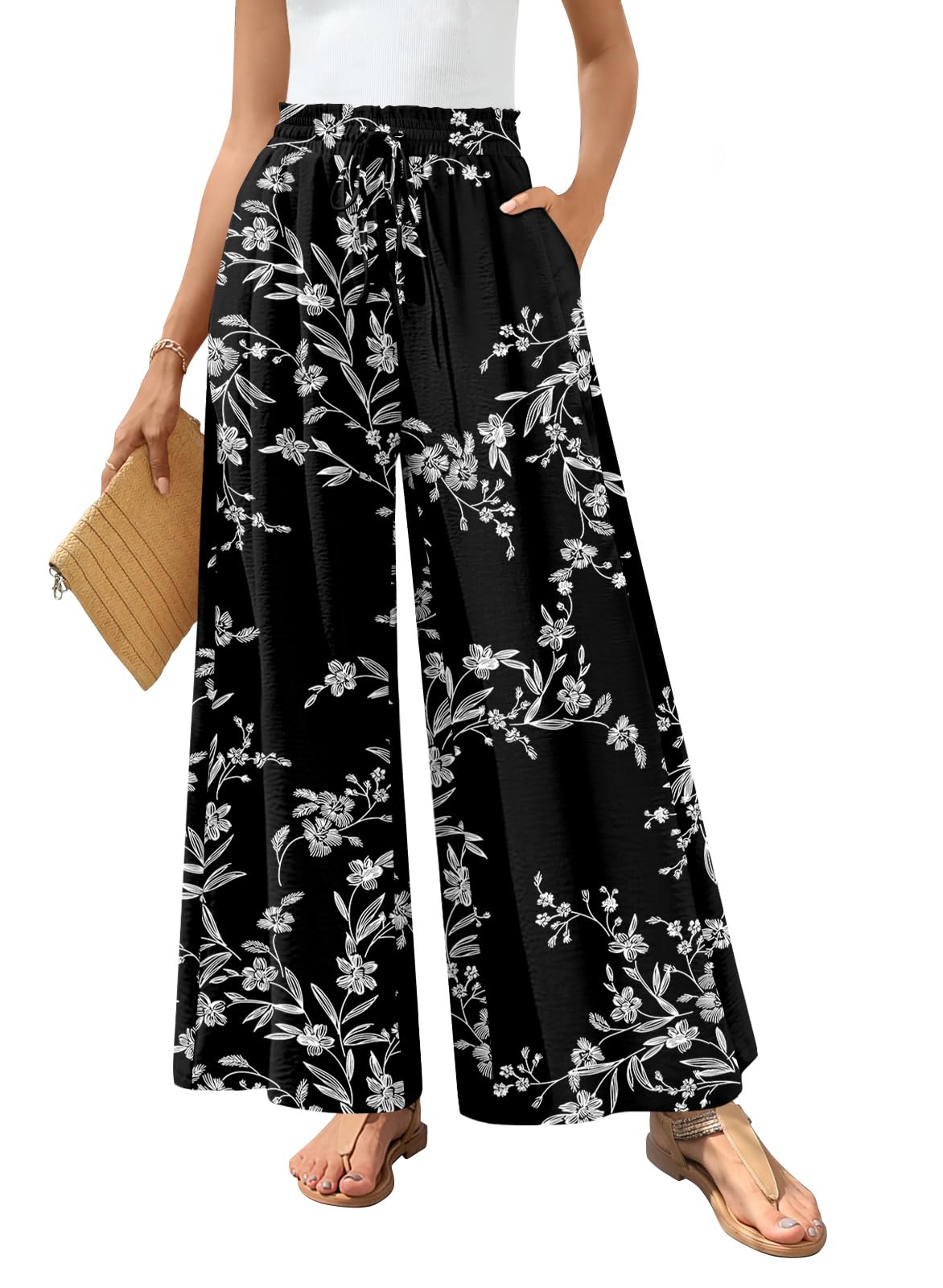 Bestbee Palazzo Pants for Women Dressy Casual Wide Leg Slacks Elastic Waist Outfits Flowy Pant with Pockets