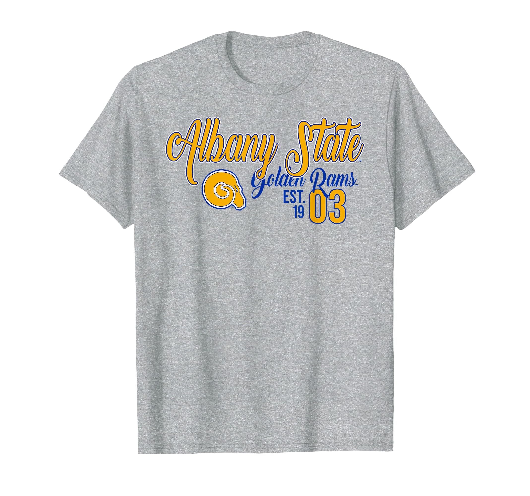 Officially Licensed Albany State University apparel. Show your support for the Golden Rams with this ASU logo apparel! The soft material and digitally printed logo make this a great addition to any Albany State Golden Rams apparel collection! Wear this fan favorite Albany State Golden Rams apparel t