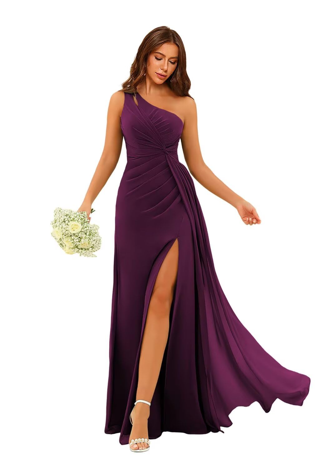 YMSHA One Shoulder Bridesmaid Dresses with Slit Pleated Formal Dress for Women CLN001