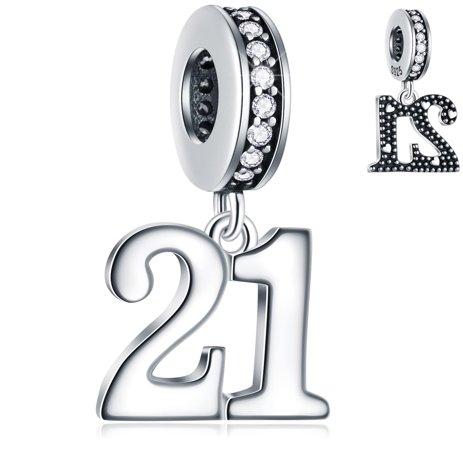GLOWDAS 10 to 25 28 30 31 33 35 36 40 45 50 55 60 65 70 75 80 Birthday Charms, fits European Anniversary Bracelet/Necklace, 925 Sterling Silver Number