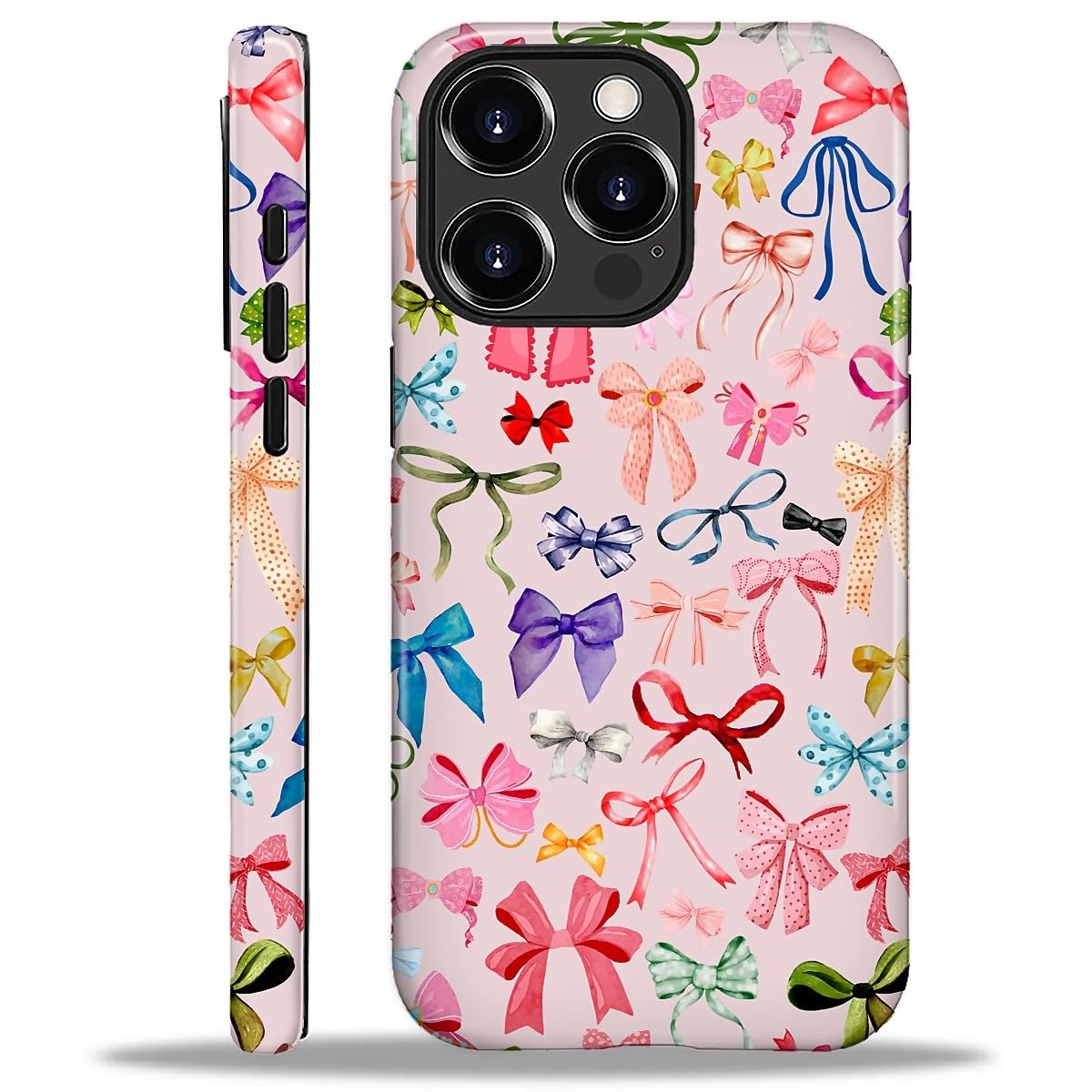 ilikediy for iPhone 16 Pro Case,HL2 Aesthetic Color Bow Tie Hybrid 2 Layer Hard Shell Silicone Protective Pattern Design Case