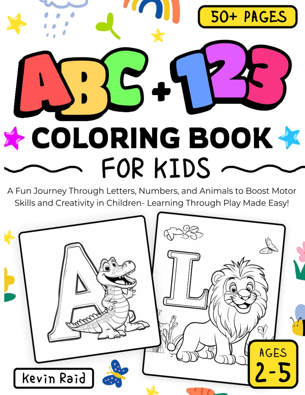 ABC 123 Coloring Book for Kids Ages 2-5: A Fun Journey Through Letters, Numbers, and Animals to Boost Motor Skills and Creativity in Children-