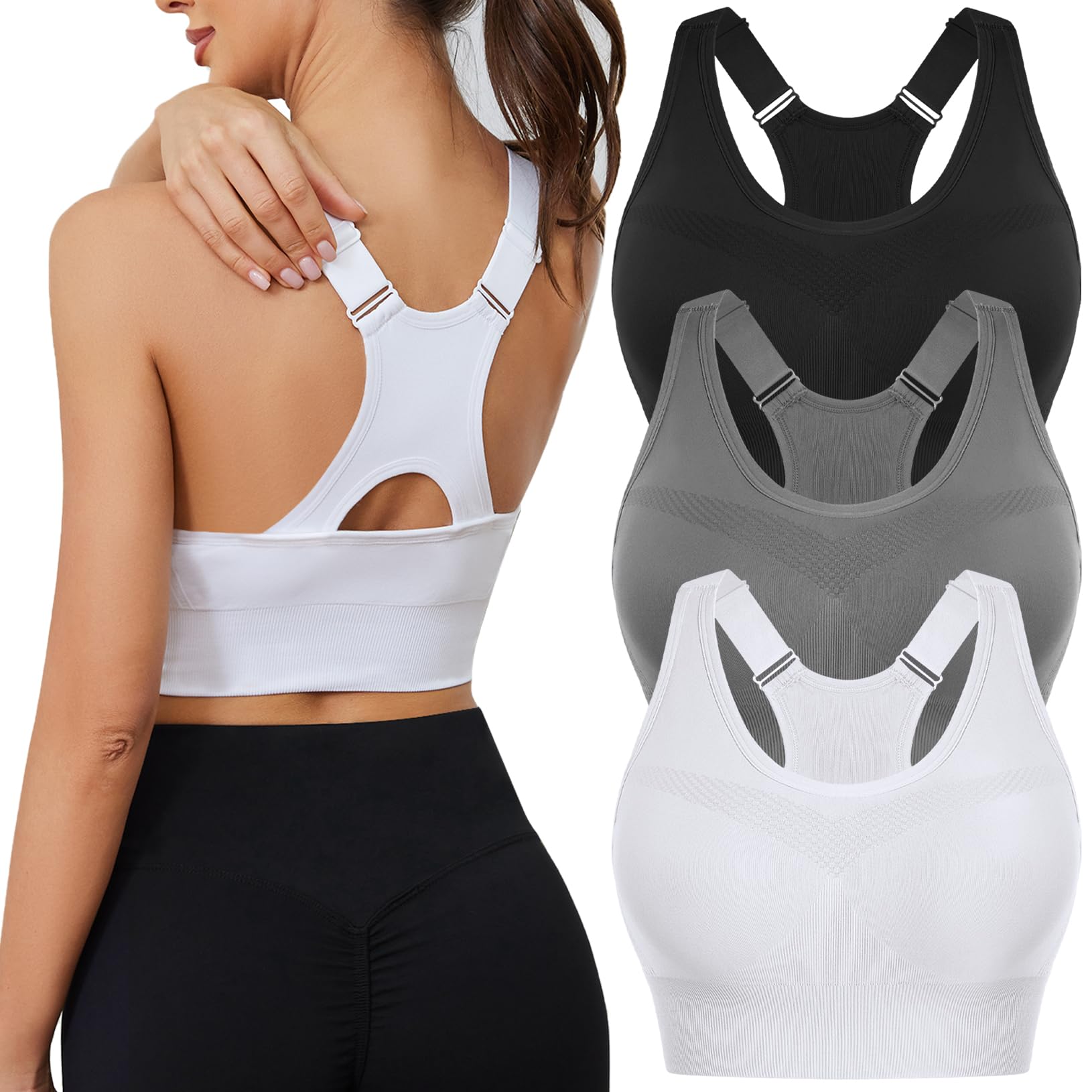 Sykooria Adjustable Sports Bra for Women High Support Padded Workout Tops Packs Gym Fitness Running Yoga Bras