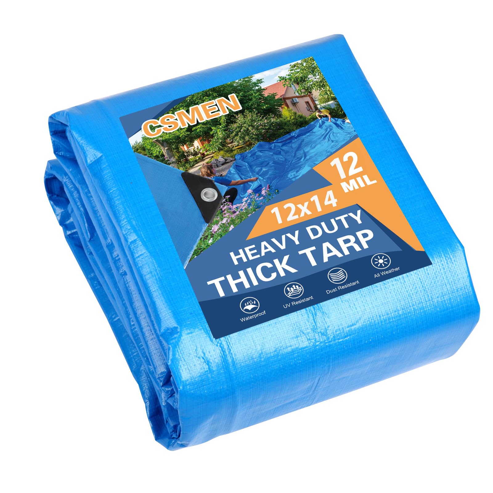 CSMEN Tarp Heay Duty Waterproof 12x14ft,Blue Tarp Cover Plastic Poly Tarpaulin for Outdoor Cover,Emergency Rain,Roof, Pool, Boat,Camping -