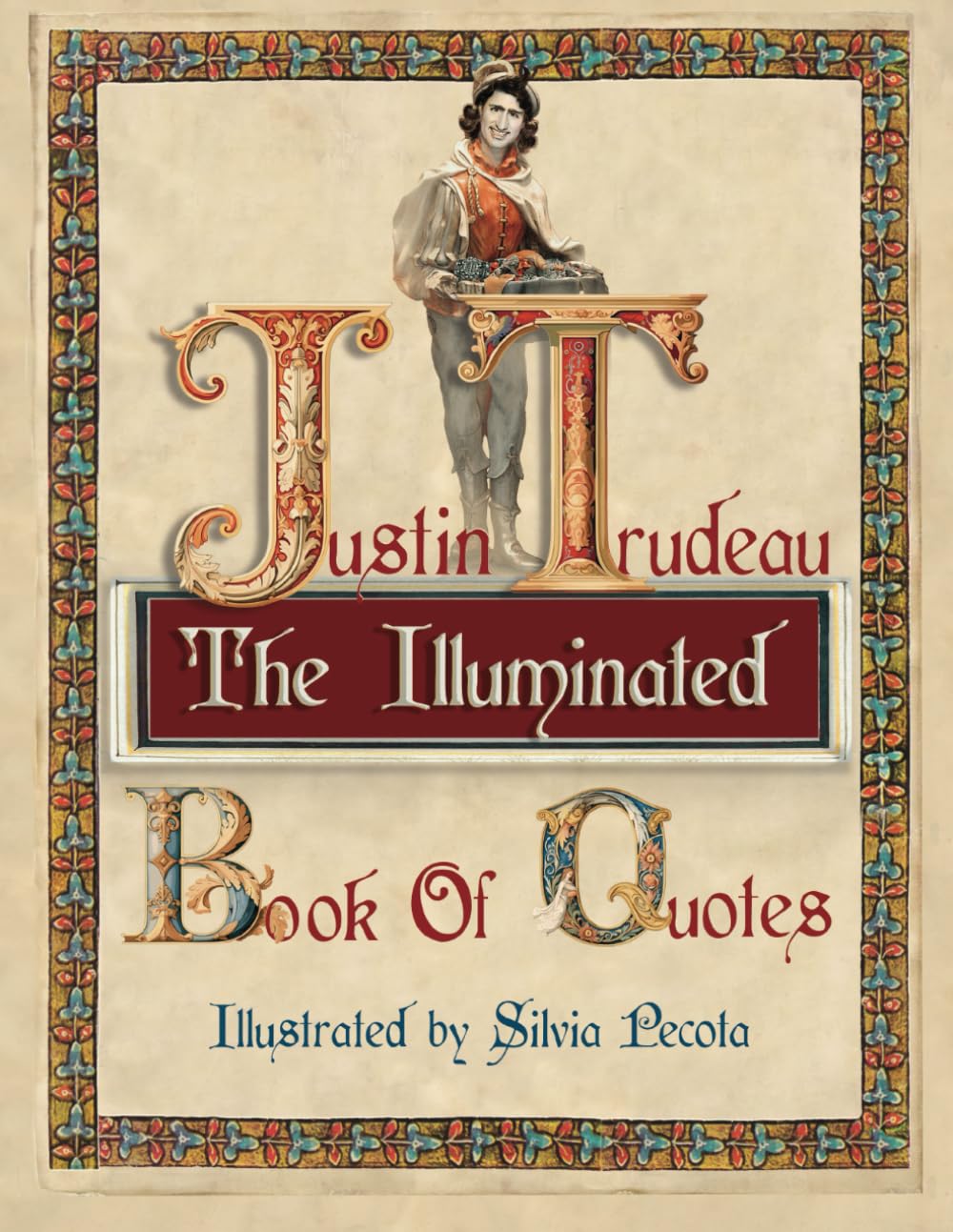 Inspired by medieval illuminated manuscripts, Canadian artist Silvia Pecota has illustrated this satirical collection of quotes made by Justin Trudeau since he entered office. Incorporated are allegorical characters representing key figures who have influenced this Prime Minister’s style of politi