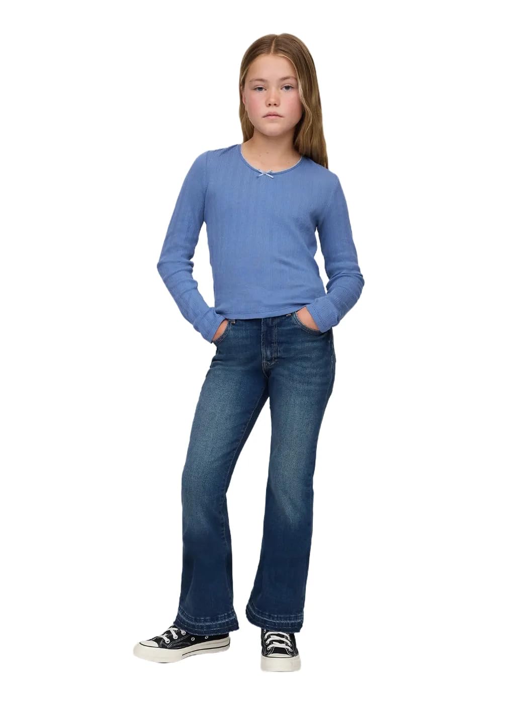 Comfortable and durable GAP Girls High Rise flare jeans designed for cooler fall days—perfect for school, play, and everyday wear. Versatile and easy-to-wear, GAP baby and kids pants are perfect for school, playdates, weekend activities, and running errands with the family. Available in a Full Ran